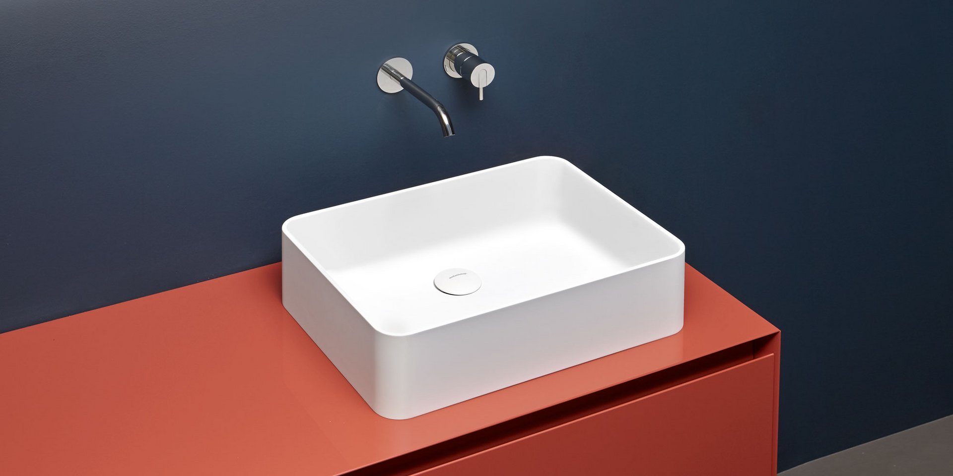 Rectangular top mount or undermount Flumood sink, can be externally lacquered in all colors of our collection,