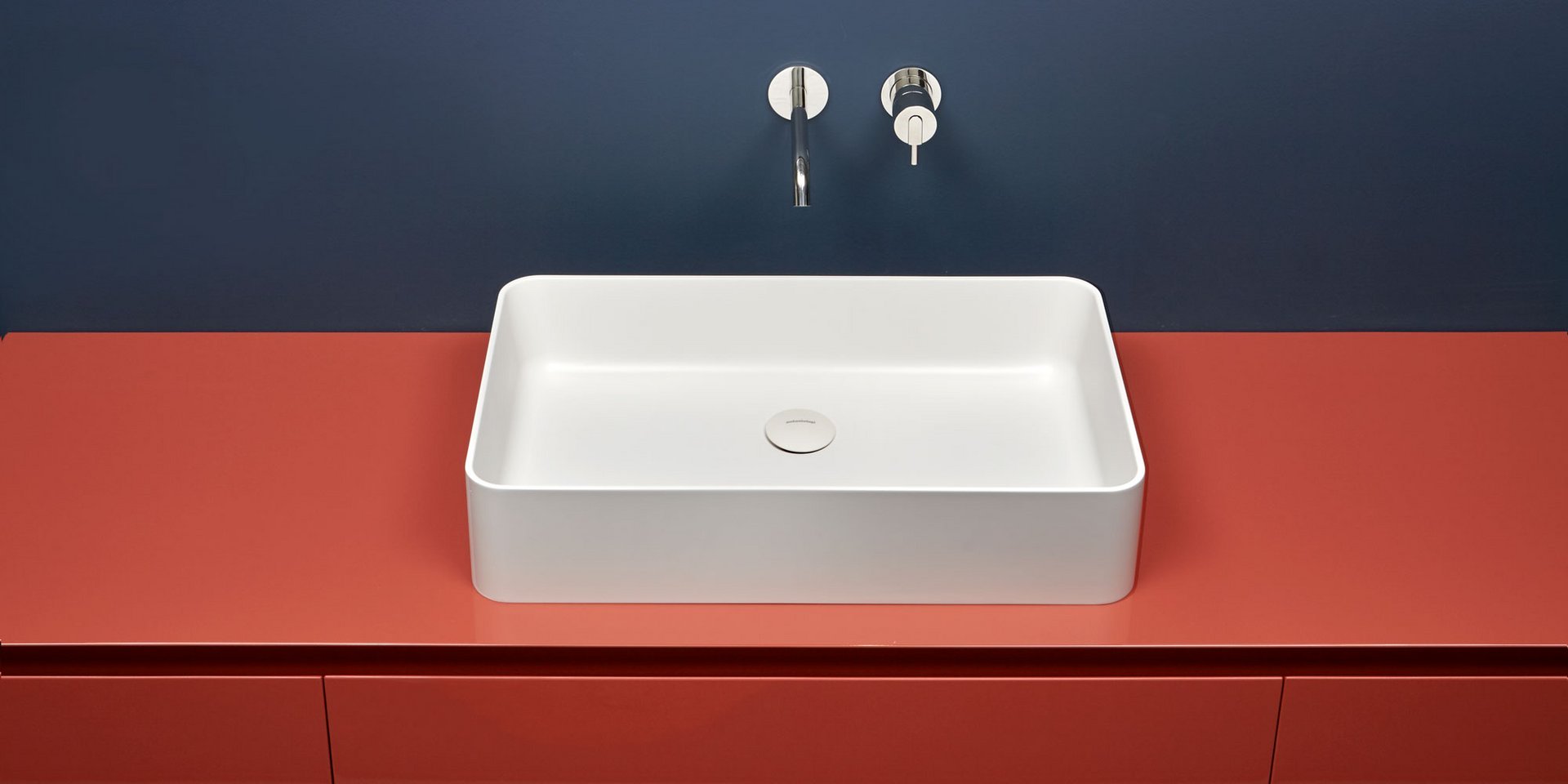 Rectangular top mount or undermount Flumood sink, can be externally lacquered in all colors of our collection, complete with drain pipe fitting and open plug.