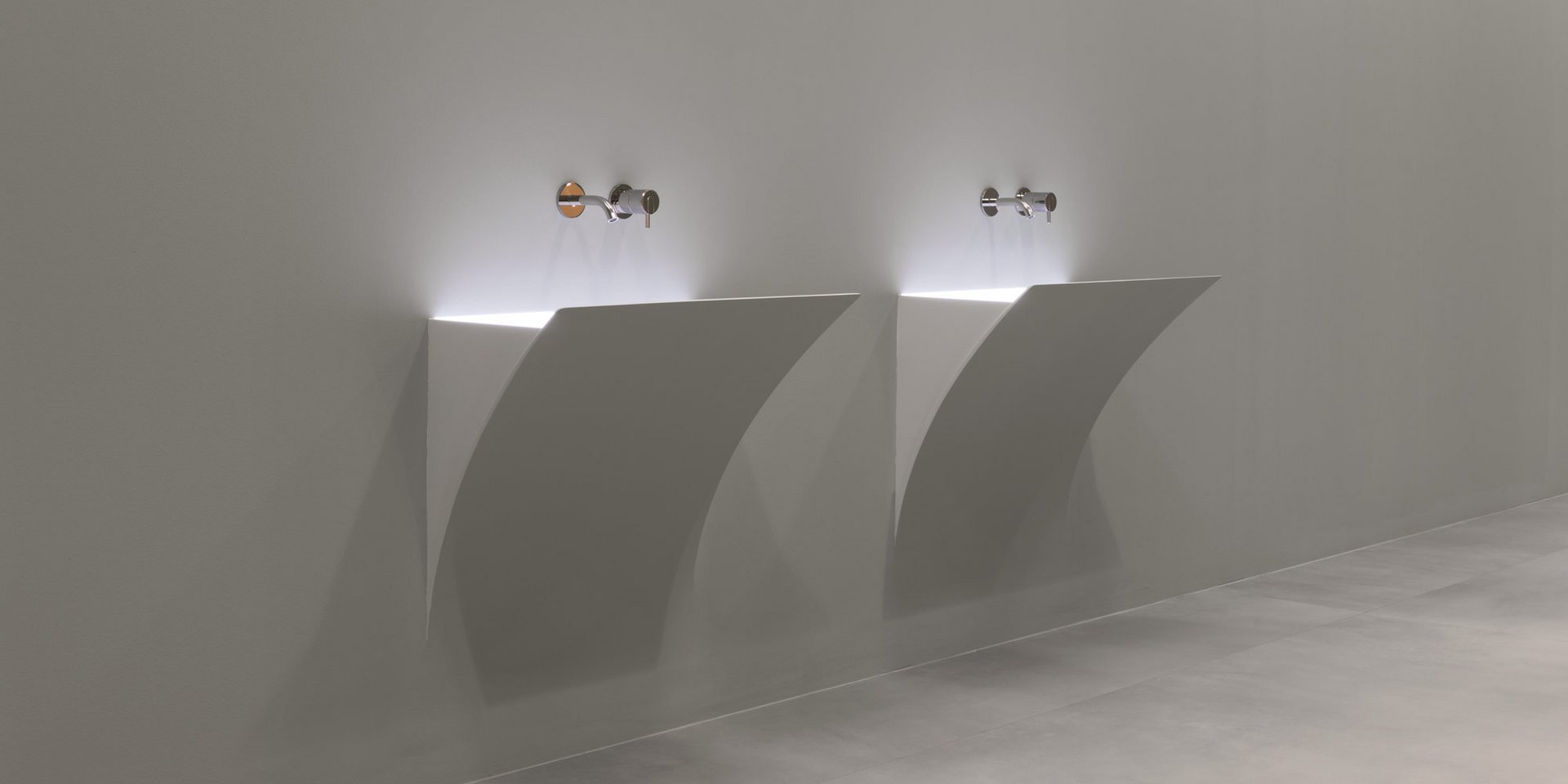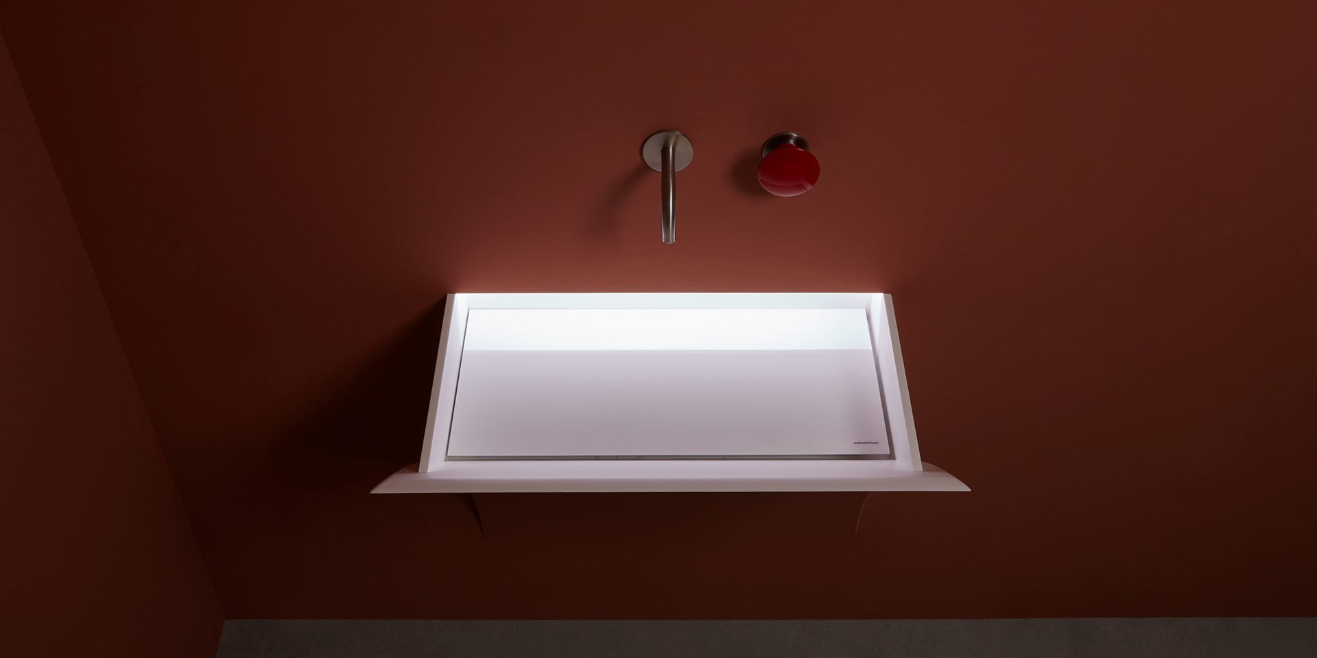 Encased Corian sink with or without led lighting, complete with inspectable drain, trap and flexible hose.