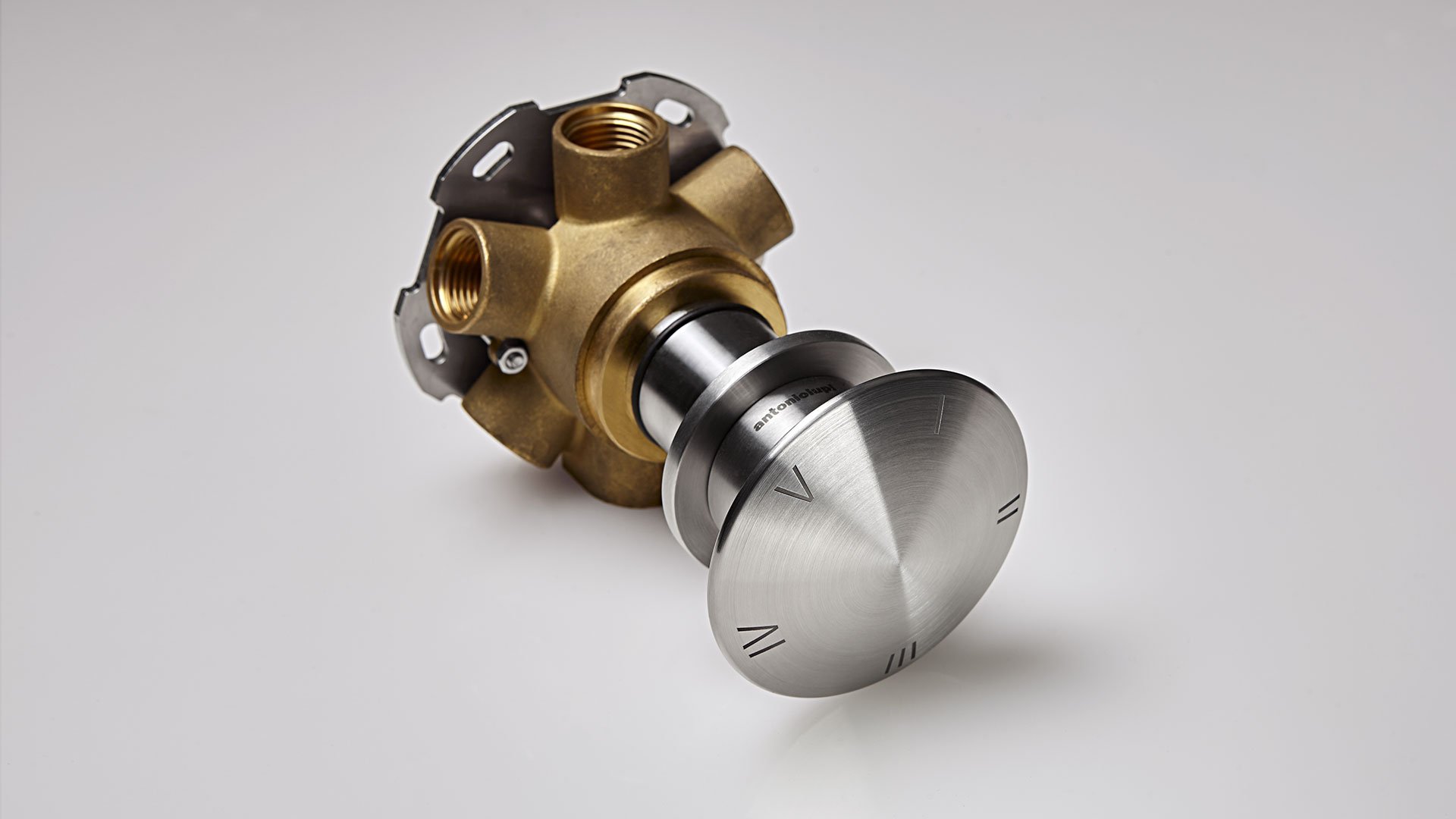 Encased 2, 3, 4 or 5 way diverter, with handle in satin stainless steel complete with concealed valve.