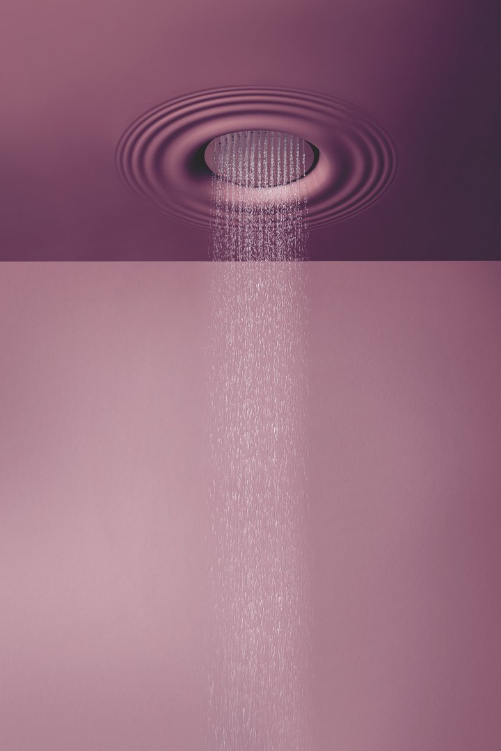 Ceiling encased Flumood frame with satin stainless steel AISI 304 showerhead.