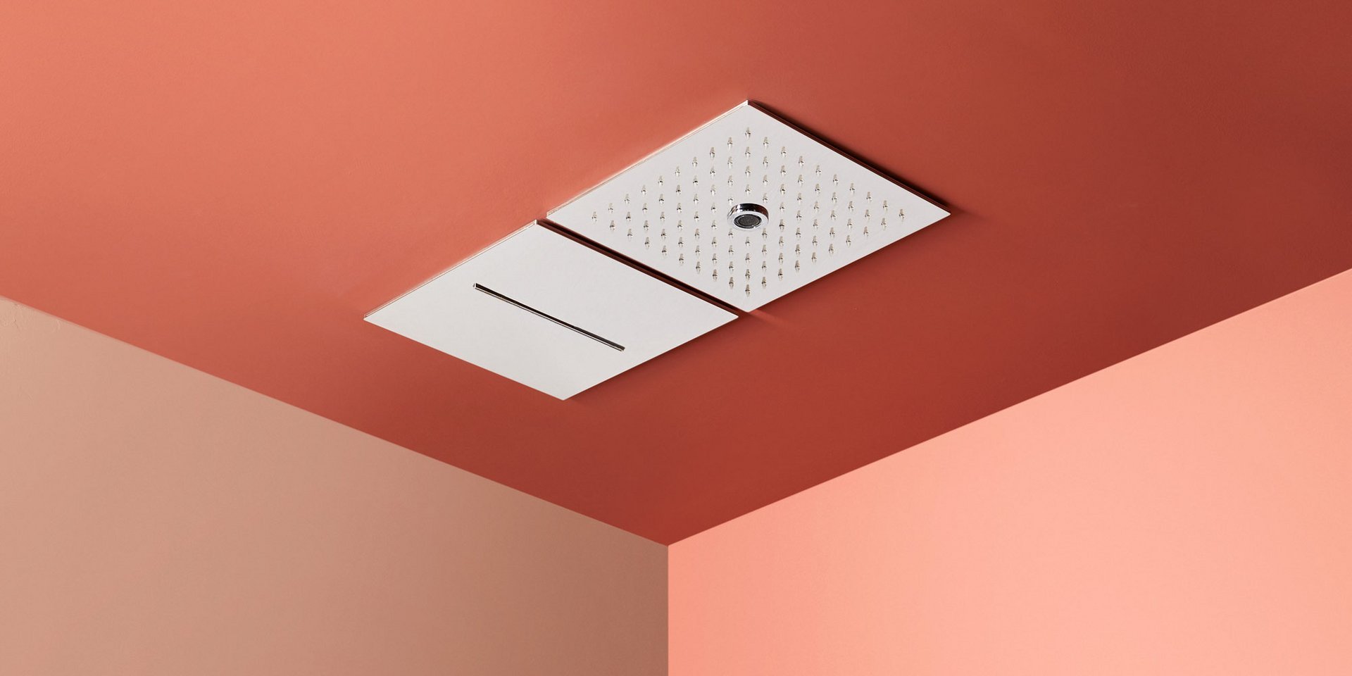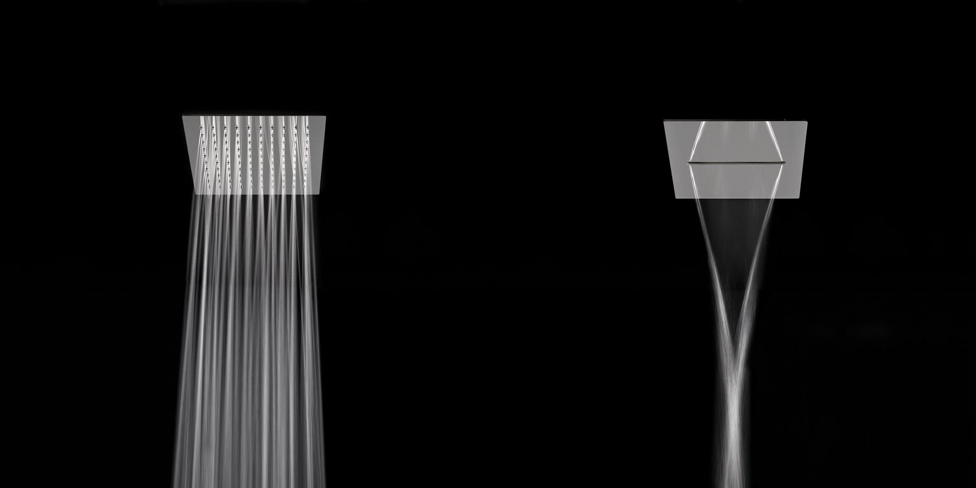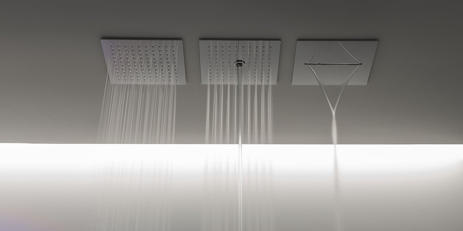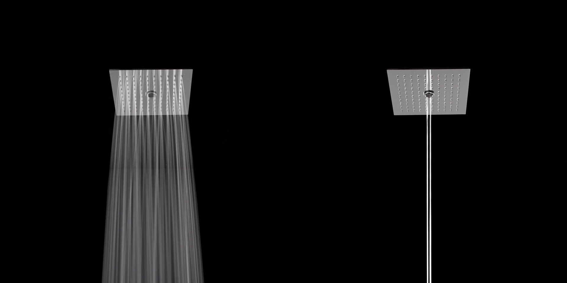 Encased modular showerhead with waterfall in polished stainless steel AISI 304.
