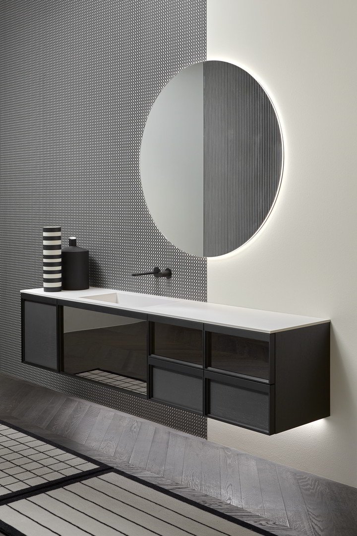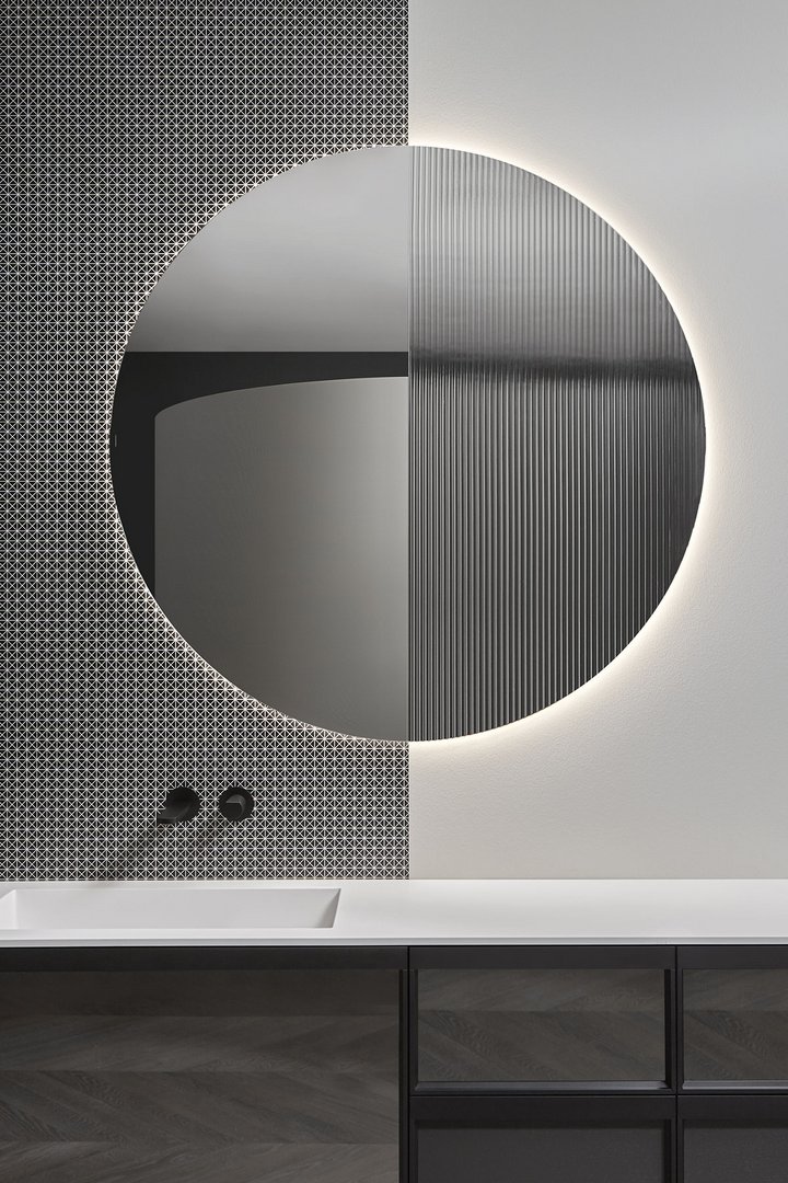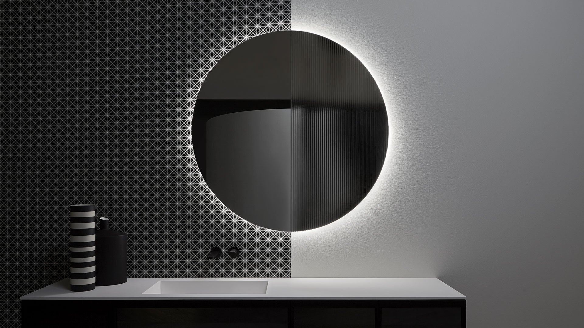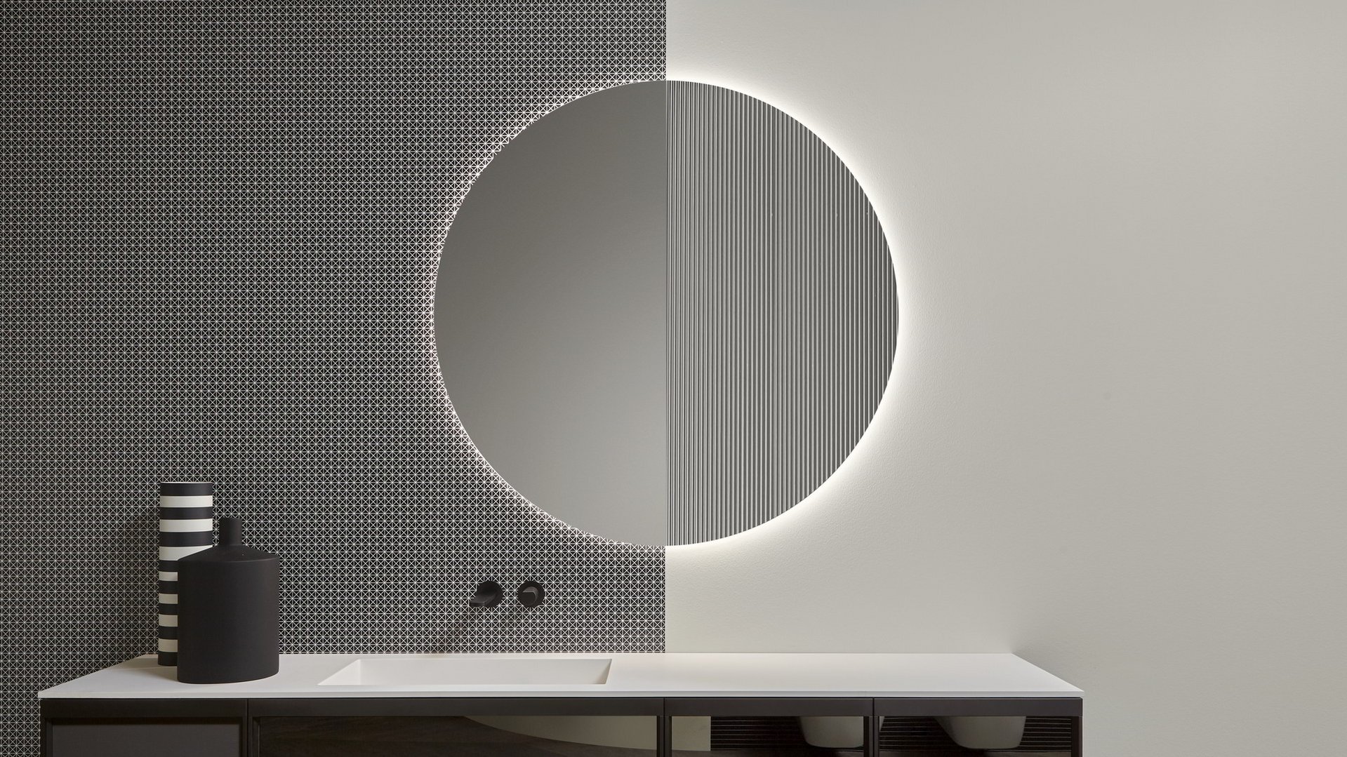 Superluna 是具有純圓形和幾何表達(dá)的裝飾浴室鏡。這面墻鏡由兩個(gè)元素組成,一個(gè)用作鏡子,另一個(gè)用作裝飾性裝飾面,帶有樸素而優(yōu)雅的銀色羅紋圖案。Superluna 配備了周邊 LED 照明,在支撐墻上創(chuàng)造了建筑深度的效果。