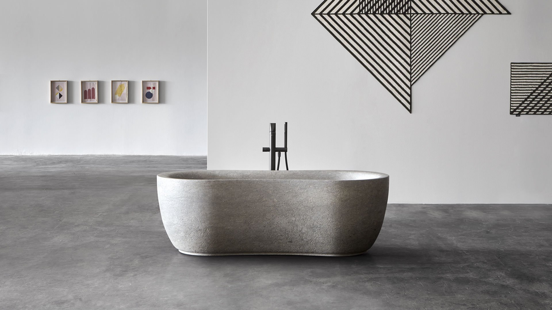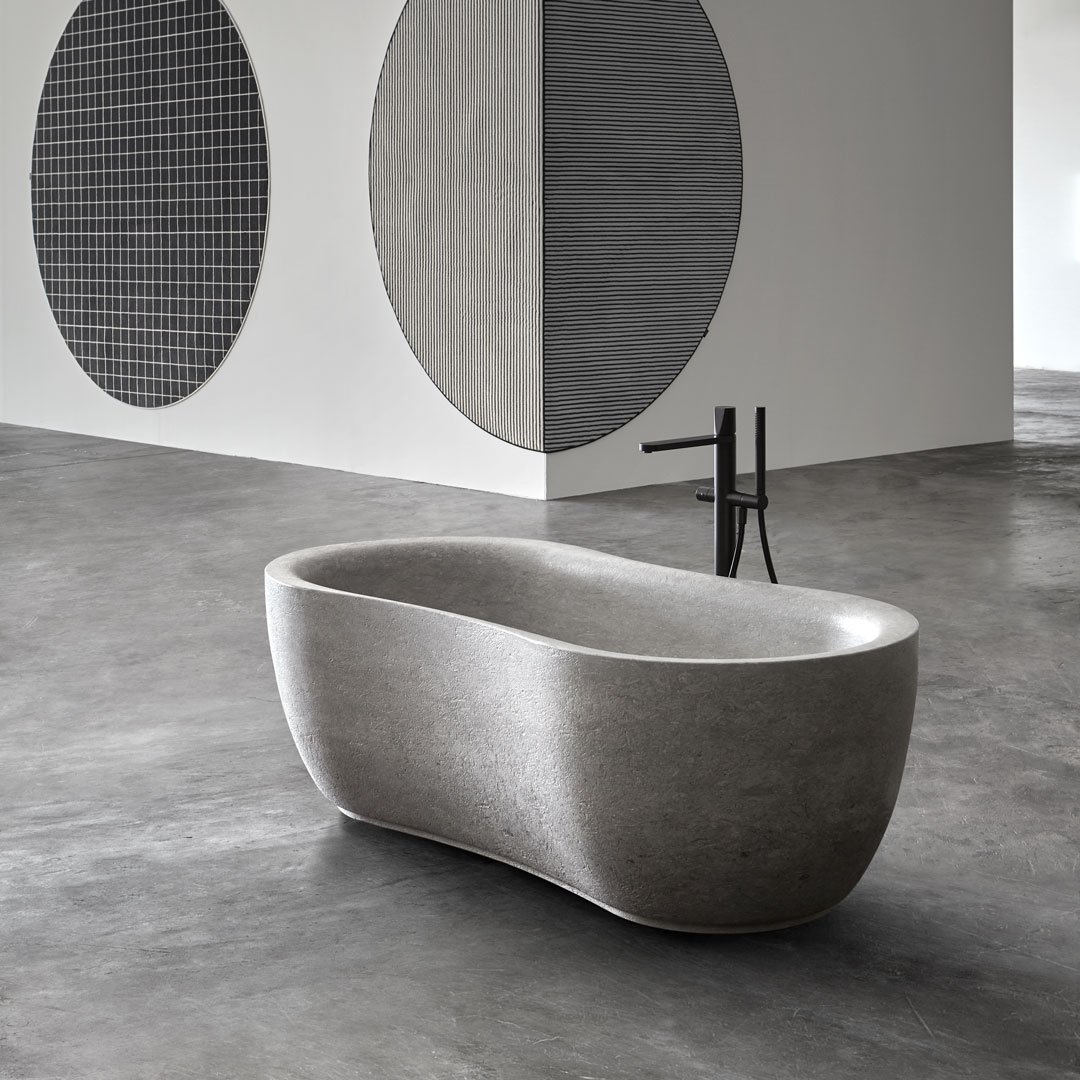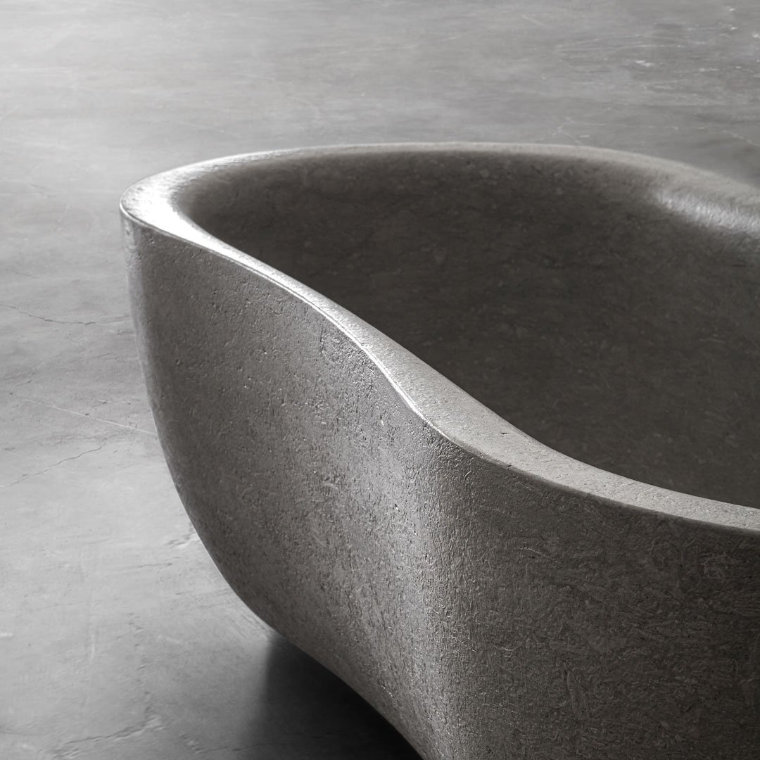 Fida 浴缸的靈感來自大自然。Fida 是一座真正的雕塑,由拉絲的維琴察灰色阿爾卑斯石整塊雕刻而成。具有典型淺灰色的材料以大型化石的存在為特征,為 Fida 浴缸提供了材料與功能之間的現代相遇。外部線條從河流樹林的有機形式中汲取靈感,賦予作品一種流動感。邊緣圓潤,線條流暢。浴缸內部是符合人體工學且精心設計的環境,傳達安全與舒適。