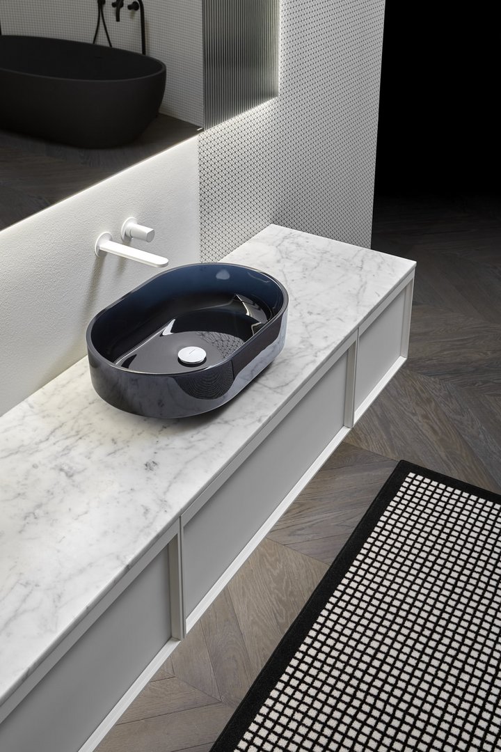 Borghi 系列的橢圓形臺面水槽完全由 Cristalmood或 Icemood制成。該材料為其體積賦予了輝煌和現(xiàn)代的形象,似乎比狹窄底座產(chǎn)生的懸浮效果更“輕”,使其能夠“漂浮”在空間中。因此,珍貴的珠寶誕生了,它們具有豐富的反射和光線,這些是環(huán)境特征的元素,能夠與 antoniolupi 臺面和家具的基本和最小線條對話,以在不同風格的環(huán)境中融入優(yōu)雅和品味。