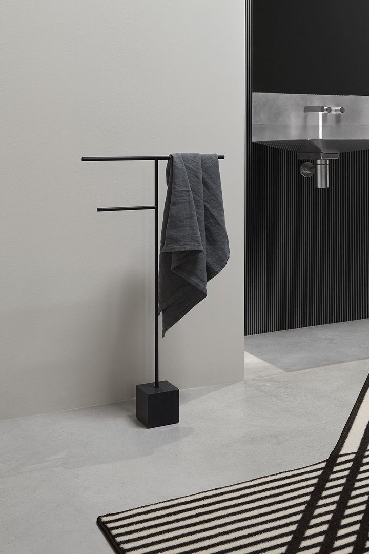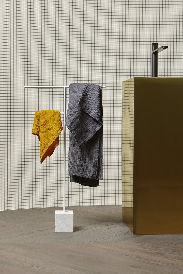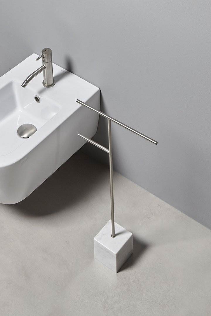 個嚴謹的圖形標志在空間內發展并成為三維空間,純粹的正交線條描述了優雅精致的配件,能夠以謹慎和風格融入浴室。黃銅金屬結構,有緞鋼、拋光鉻、啞光白色或壓花顏色可供選擇,上升分支并放置毛巾或紙卷。這些配飾堅固但又空靈。Bivio 是一系列獨立式配件,具有基本而干凈的形象,源于堅固與輕盈、重力與在太空中盤旋的能力之間的相遇。