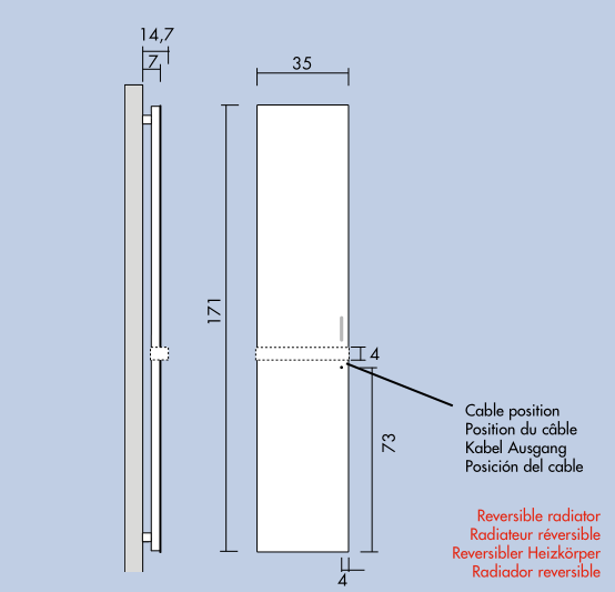 The Tavola Total Mirror electric designer radiator is the evolution of the Tavola designer radiator designed by Andrea Crosetta, which has been reinterpreted with an even more modern and futuristic twist. The perfect symbiosis between the 'mirror' elements and the 'radiator', the Tavola Total Mirror electric designer radiator is in every way a mirrored radiator, a surprising example of the sophisticated technologies devised by Antrax IT in metal processing and the accomplishment of even the most ambitious projects.