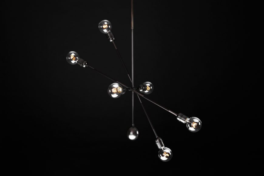 INSPIRED BY THE SILHOUETTE OF FAMED FRENCH AERIALIST PHILIPPE PETIT ON HIS WIRE. THE “BALANCE BAR” IS WRAPPED IN LEATHER OR SUEDE AND CAN BE TILTED ALONG ITS AXIS.
