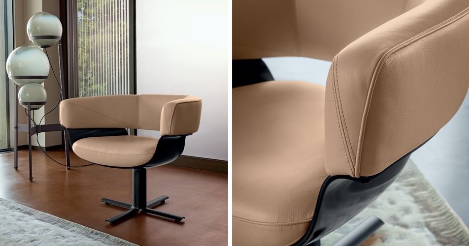 Quando Giuseppe Viganò ha concepito l'idea di Jordan, non si è reso conto che un nome così iconico avrebbe potuto produrre un design così potente. Un design che ha lo stesso potere di sfidare le aspettative e di essere simbolico. Jordan è una dichiarazione, un principio di grande design e di grande costruzione. In effetti, la sua unicità consiste nel fatto che sfida le definizioni standard, ritagliandosi un proprio percorso quando si tratta di creare lusso nel mercato delle poltrone. Non aveva bisogno di essere grande, quindi non lo è. Non aveva bisogno di materiali diversi, ma li usa comunque. Le cuciture dello schienale diventano un dettaglio glamour, la scocca è in poliuretano e la base è dotata di un meccanismo di ritorno. Infine, può essere rivestita in tessuto o in pelle.