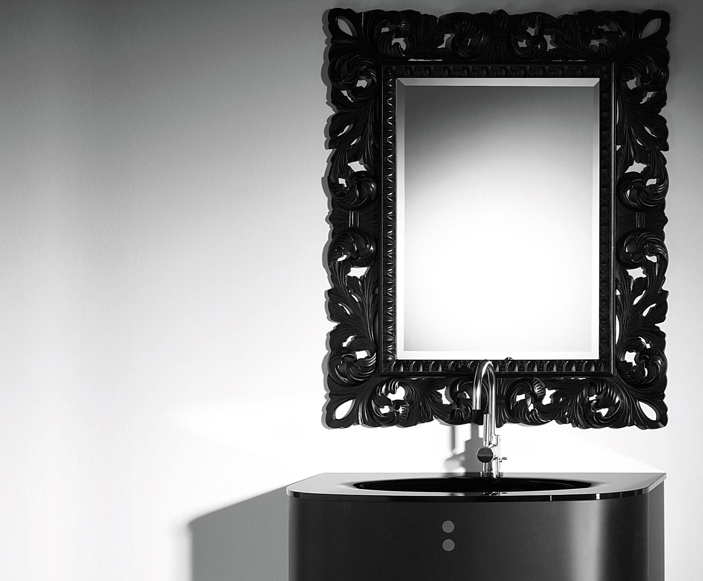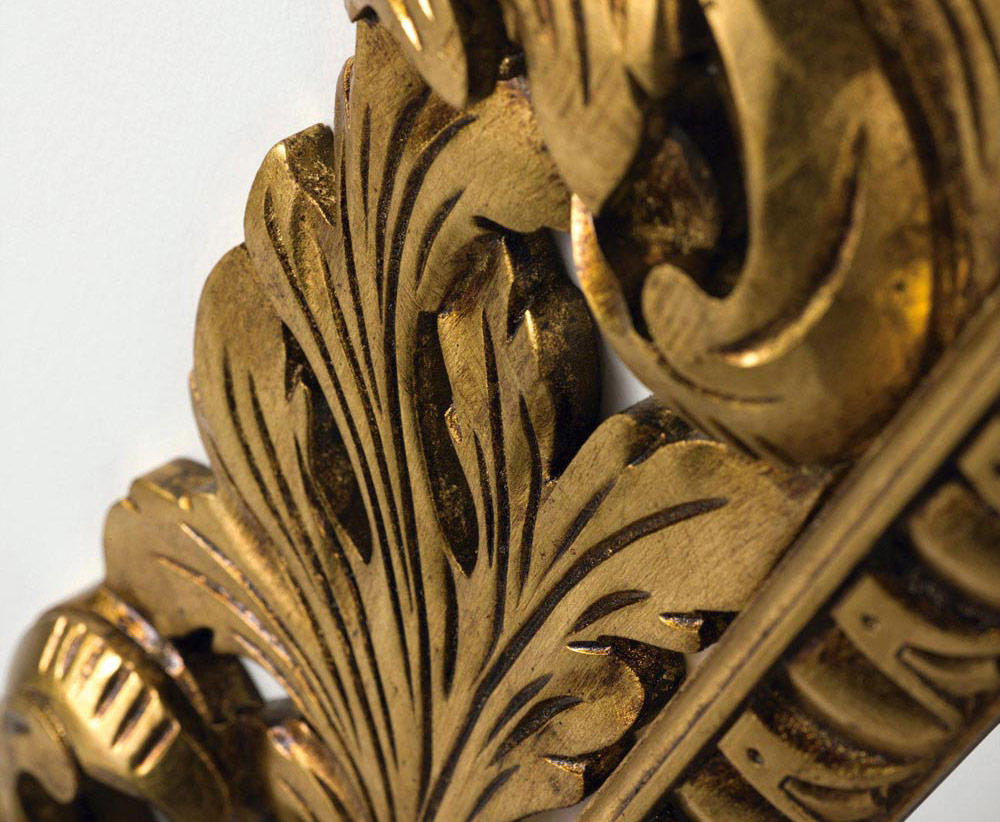 Specchio filo lucido con cornice in legno ad intarsi.