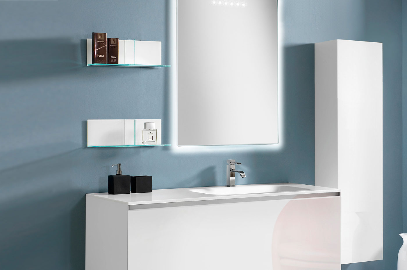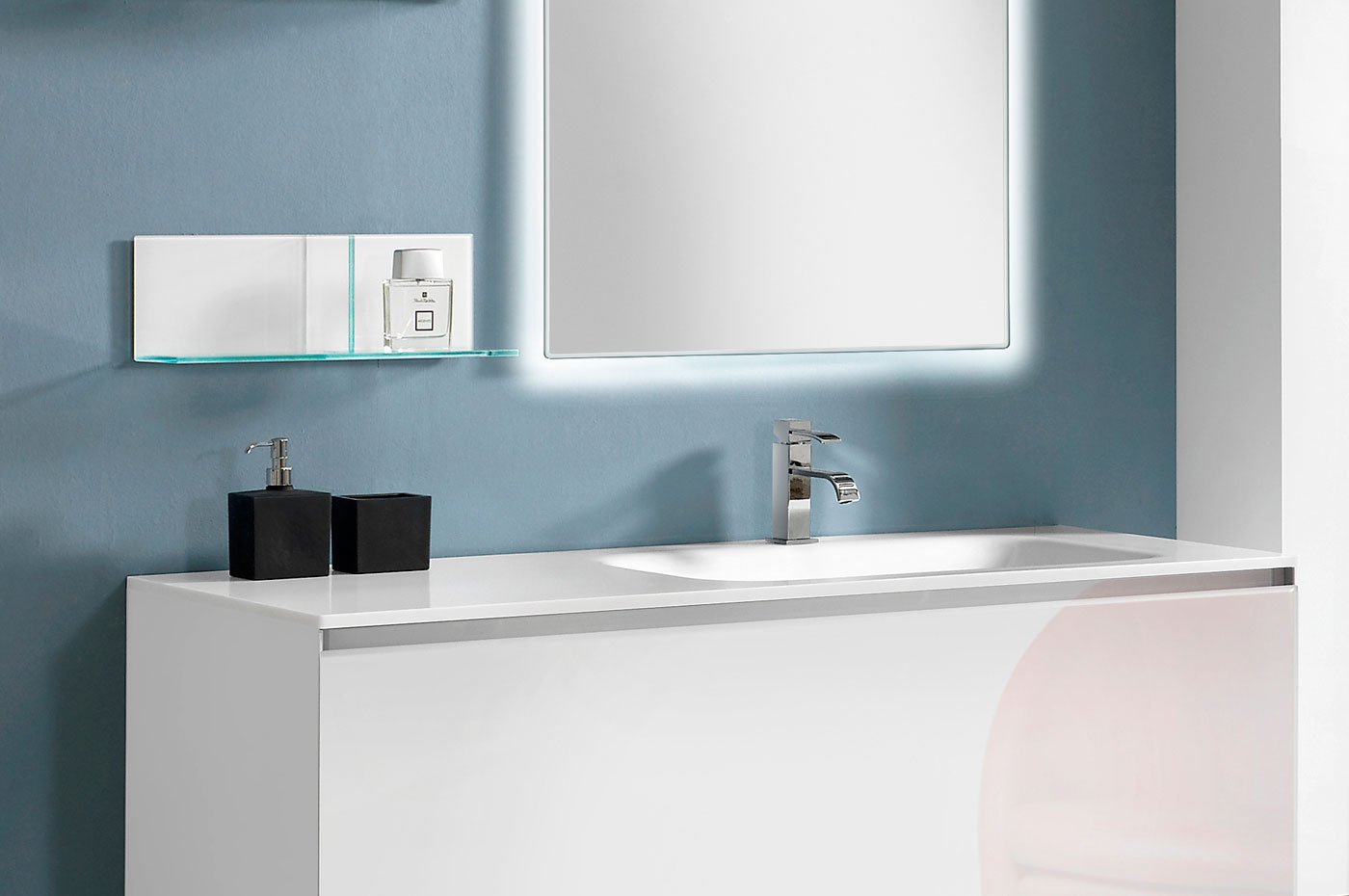 La particolarità di Domino è quella di offrire una vasta scelta compositiva, pur essendo elementi monoblocco in Cristallo. Domino e Domino44 si differenziano per la diversa profondità (permettendo di adattarsi alle più svariate esigenze spaziali) e per le caratteristiche delle aperture: dal cassettone ai due cassetti ?no al cassetto singolo.