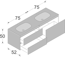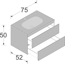 La particolarità di Domino è quella di offrire una vasta scelta compositiva, pur essendo elementi monoblocco in Cristallo. Domino e Domino44 si differenziano per la diversa profondità (permettendo di adattarsi alle più svariate esigenze spaziali) e per le caratteristiche delle aperture: dal cassettone ai due cassetti ?no al cassetto singolo.