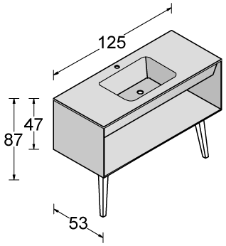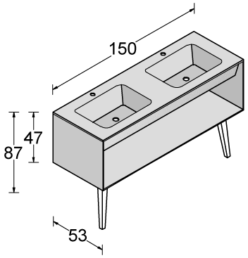 La razionalità del disegno del monoblocco è sdrammatizzata sia dalla componibilità interna data dai cassetti e dai vani a giorno, posizionabili liberamente all’interno dello spazio, sia dalla possibilità di abbinare colori diversi, grazie a Dualite.