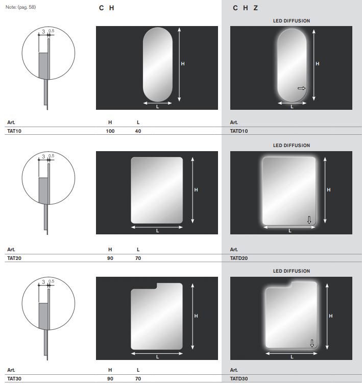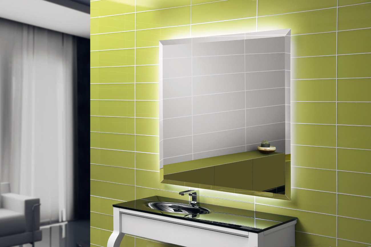 Specchio 5 mm filo toro con angoli stondati, trasfomatore 220/12V completo di telaio.