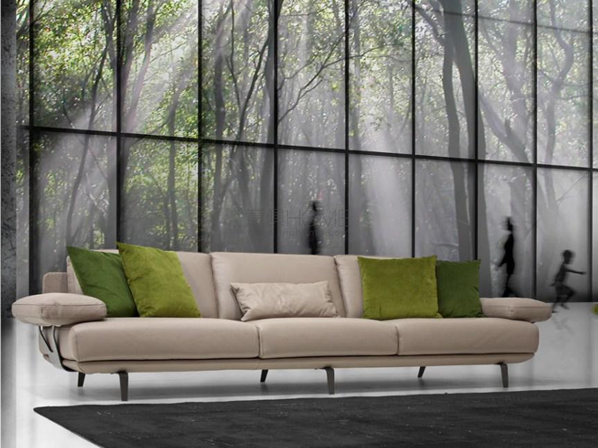 cm 275x100x84h in leather Deer 210 grey stone, arms & legs in veneer Oak grey matt finish, lacquered legs col. 7022, back central cushion with printed AM logo, structure in leather Deer 210 printed Wave