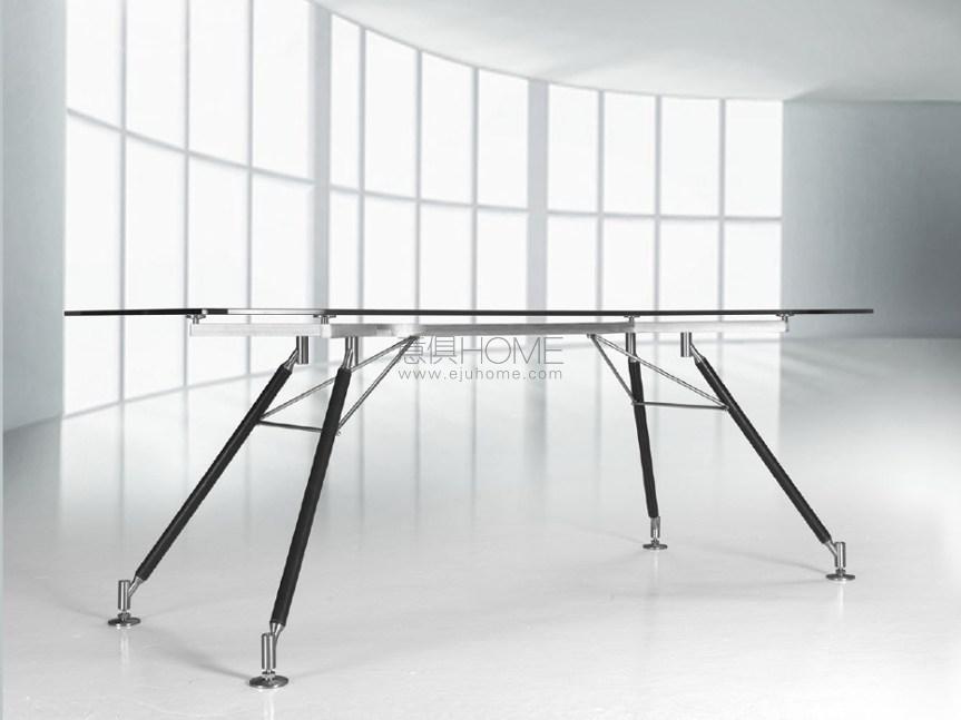 cm 220x95x75h legs in leather Shine black, 12mm glass top