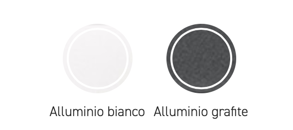 Telaio in alluminio verniciato grigio o bianco. Tessuto acrilico gr. 320 in colore bianco. Completo di soffietto antivento, apertura a manovella. Girevole a 360°.
