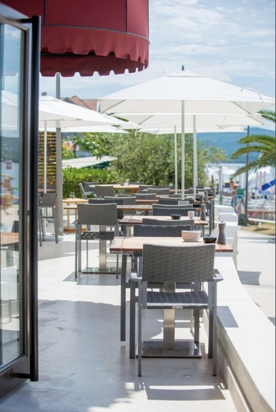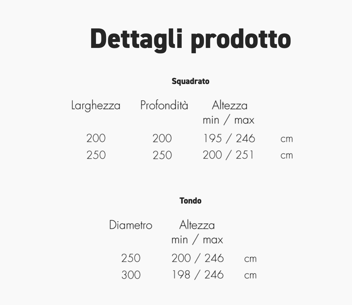Telaio in alluminio verniciato grigio o bianco. Tessuto acrilico gr. 320 in colore bianco o ecrù. Completo di soffietto antivento, apertura a carrucola, corone in resina.