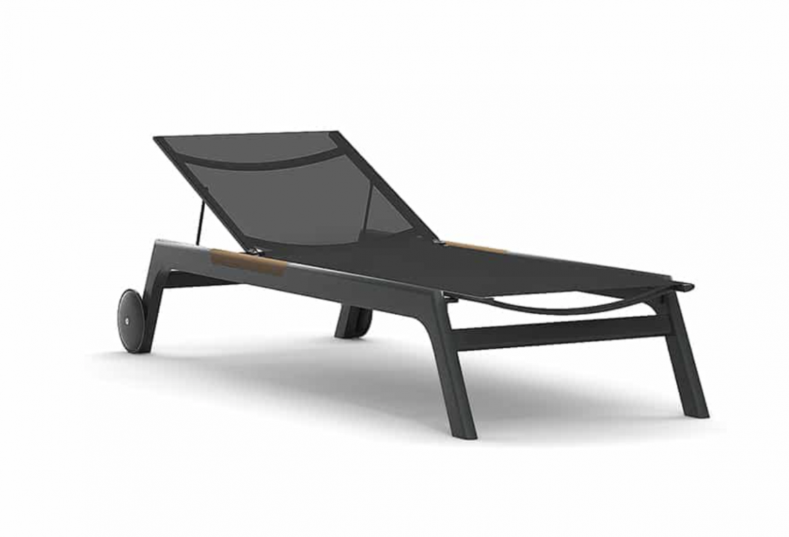 Puro, pulito e senza tempo. Il lettino in alluminio grafite o bianco con inserti in teak risulta ideale per lo spazio esterno e adattabile a qualsiasi contesto dal residenziale al hospitality.