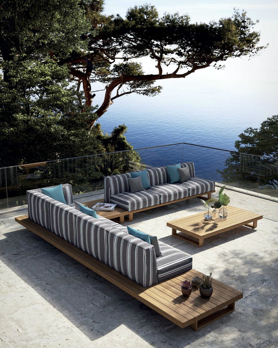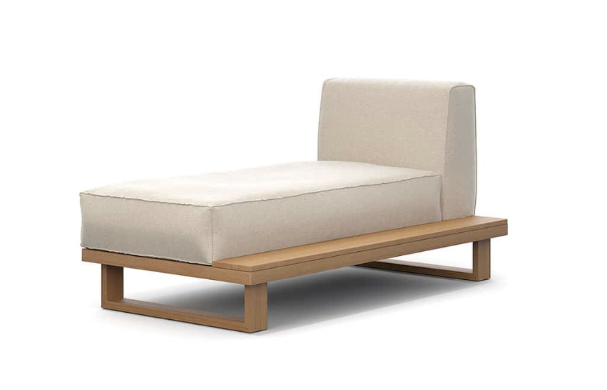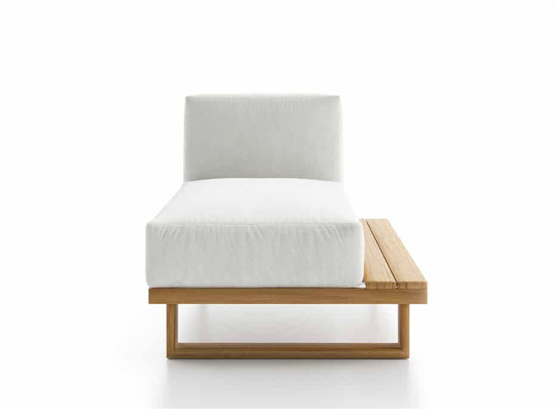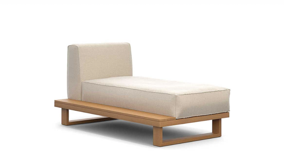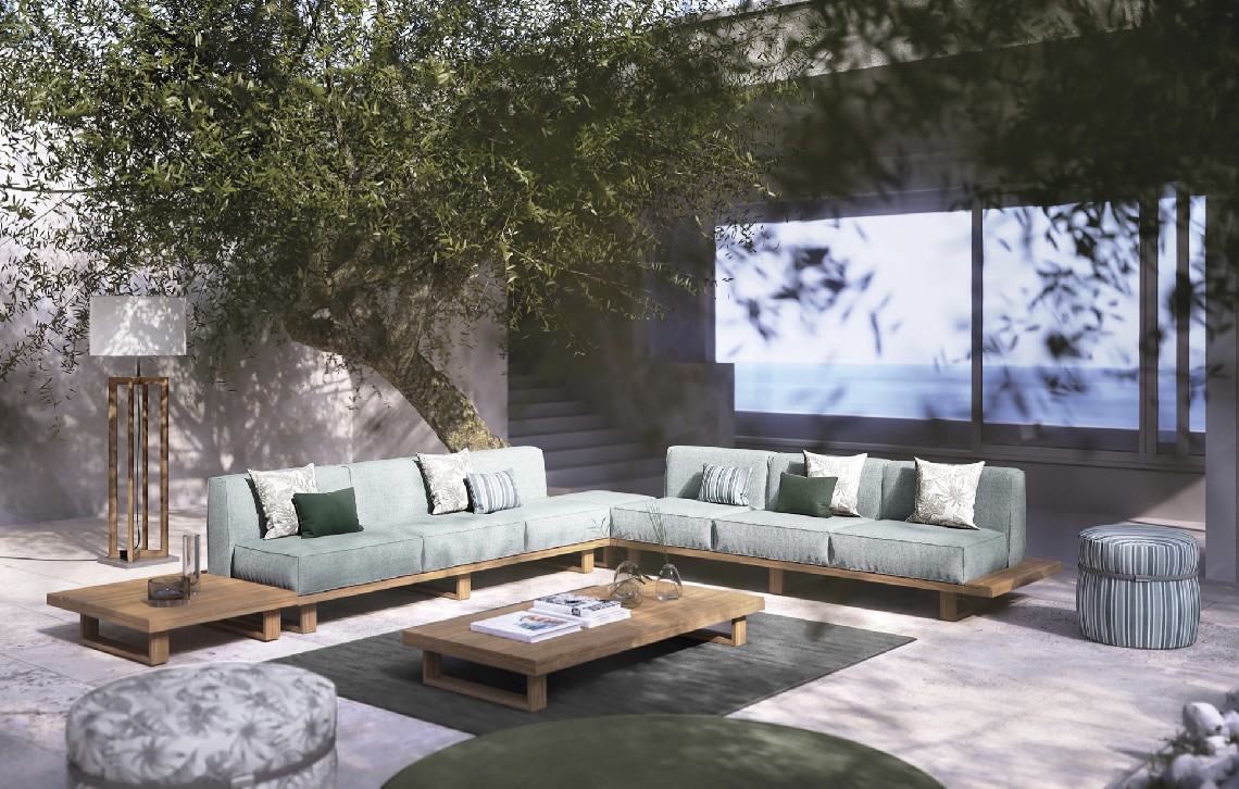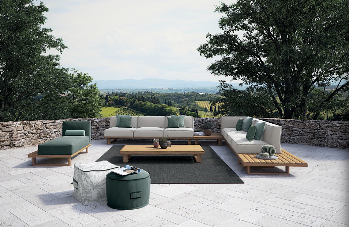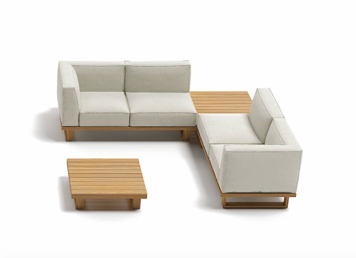 9.zero rappresenta un sistema di sedute modulari. La semplicità costruttiva dei 9 moduli base consente la realizzazione di un vasto numero di soluzioni compositive per soddisfare molteplici esigenze di spazio e funzionalità. Le strutture sono realizzate da nove doghe ciascuna di nove centimetri in legno di teak indonesiano levigato e oliato. Le imbottiture sono realizzate con gomme drenanti il tutto rivestito con i tessuti per esterni della collezione Atmosphera.