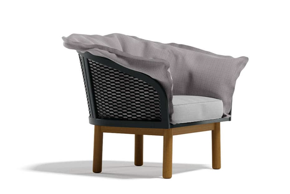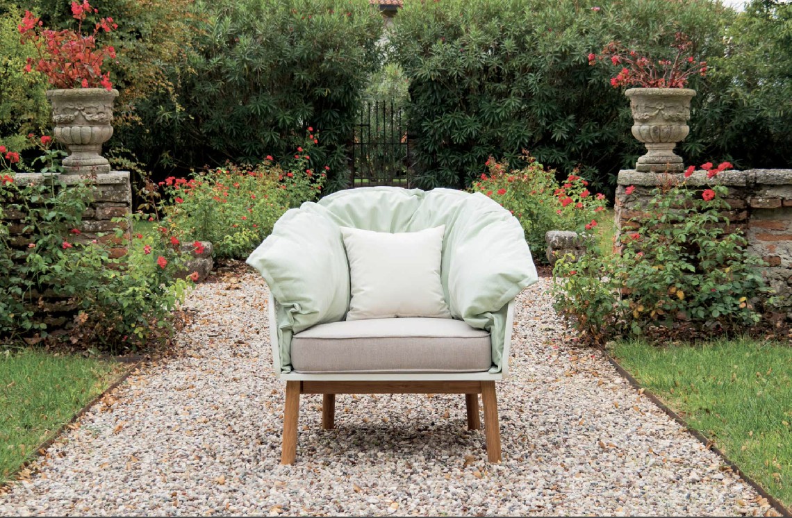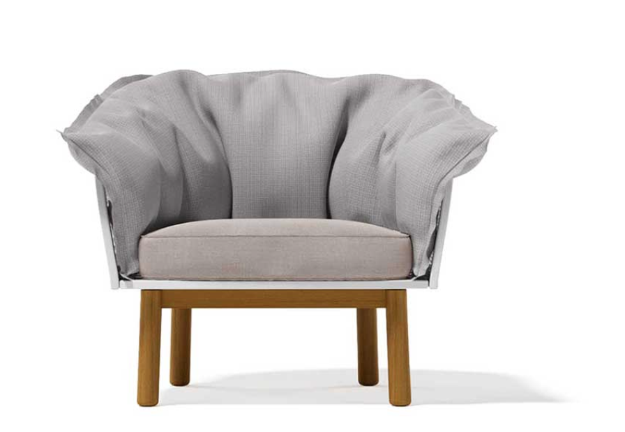 Poltrona e divano interpretano questa doppia anima fatta da componenti robusti e materici caratterizzati da un’avvolgente scocca in alluminio che incorpora una cuscinatura ergonomica e morbida che si riversa verso l’esterno dello schienale come il petalo di un fiore.