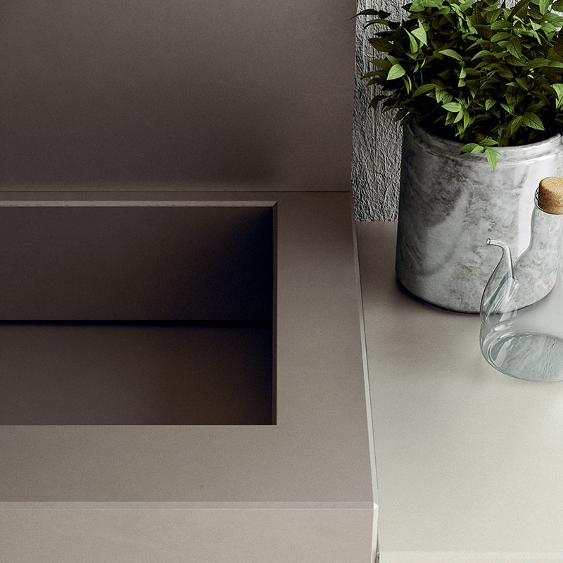 The slightly textured pleasure of porcelain stoneware in a range of natural nuances. The reliability of a resilient material, unaffected by solvents and detergents, hygienic and eco-friendly.