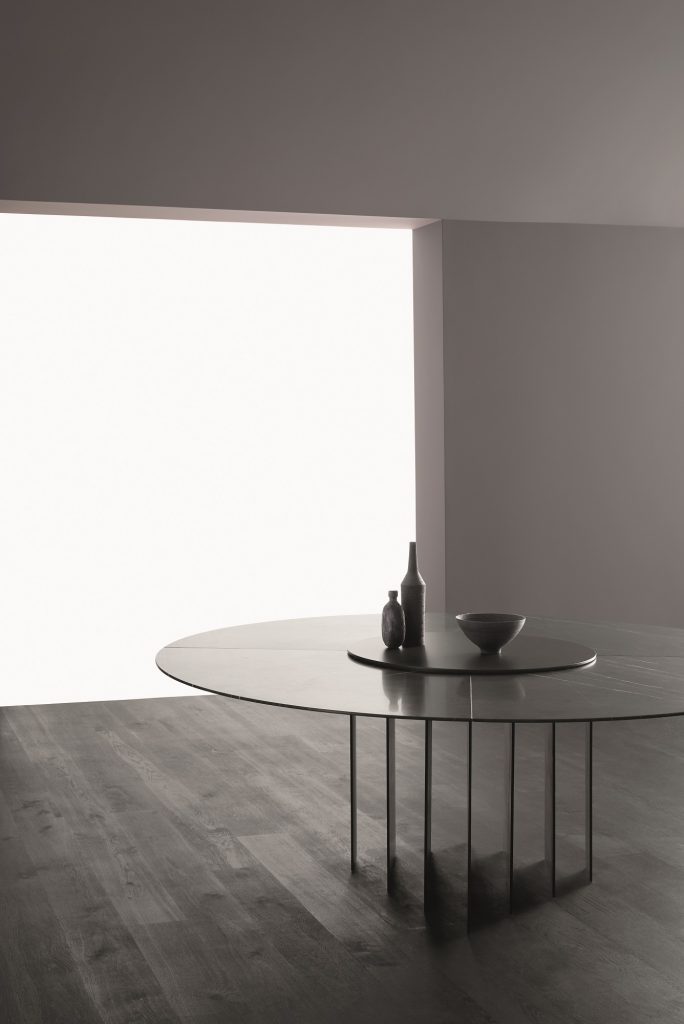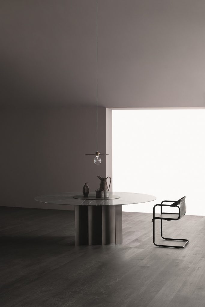 Vive di contrasti Exilis, la serie di tavoli che trova proprio nell’incontro tra elementi apparentemente discordanti, ma in un equilibrio progettuale perfetto, l’essenza della sua grande potenza espressiva. Il nome scelto per questa nuova collezione firmata Amura esprime l’essenza del contrasto: Exilis, dunque “esile”, leggero, impalpabile, ma anche “exigere”, misurare, ponderare con cura.