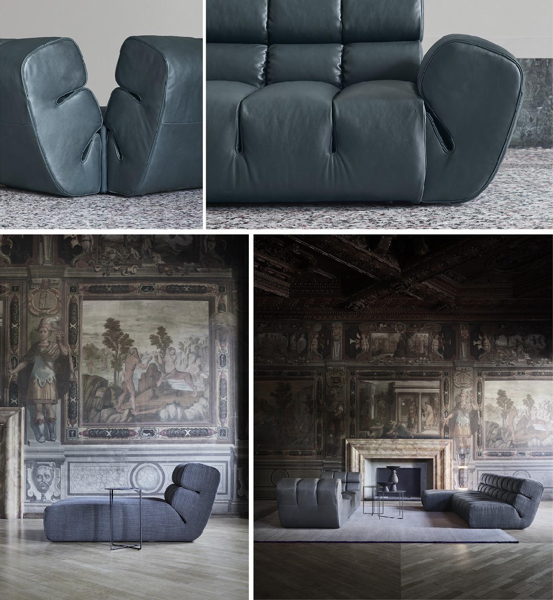 Non un semplice divano, ma una sua nuova e più profonda interpretazione, che ha l’obbiettivo di restituire al living, nella forma e nel concetto, la sua funzione primaria all’interno della casa. è la parola “accoglienza”, infatti, a dare origine ai 4 elementi modulari, che affiancandosi disegnano svariate composizioni. “Palmo” può assumere svariate dimensioni a seconda degli spazi e delle necessità: dalle forme più classiche e tradizionali, a composizioni libere e irregolari. Osservando attentamente la nuova proposta di Amura, si legge chiaramente nel design, nella morbidezza avvolgente dell’imbottitura e nelle pieghe del rivestimento, il richiamo a una mano, che stringe qualcosa, avvolgendosi su se stessa, un esplicito richiamo al concetto di “accoglienza”. Da qui il nome “Palmo”, elemento che assume il medesimo ruolo, accogliendo le persone nell’intimità della propria casa.