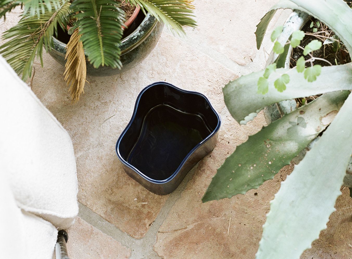 該花盆由陶瓷制成,呈現出彎曲的有機形狀,無角,最初是由艾諾·阿爾托(Aino Aalto)為她和阿爾瓦(Alvar)在赫爾辛基Riihitie路上建造的房屋的露臺設計的。 重新定義了三種尺寸供室內使用,這種花盆體現了阿爾托斯人的信念,即即使是最小的細節也值得我們花費時間和精力。 盡管該花盆在1937年的巴黎世界博覽會上的Artek演示中亮相,但從未投入批量生產。 鍋是用陶瓷手工制成的,是阿爾托建筑用語的核心材料。