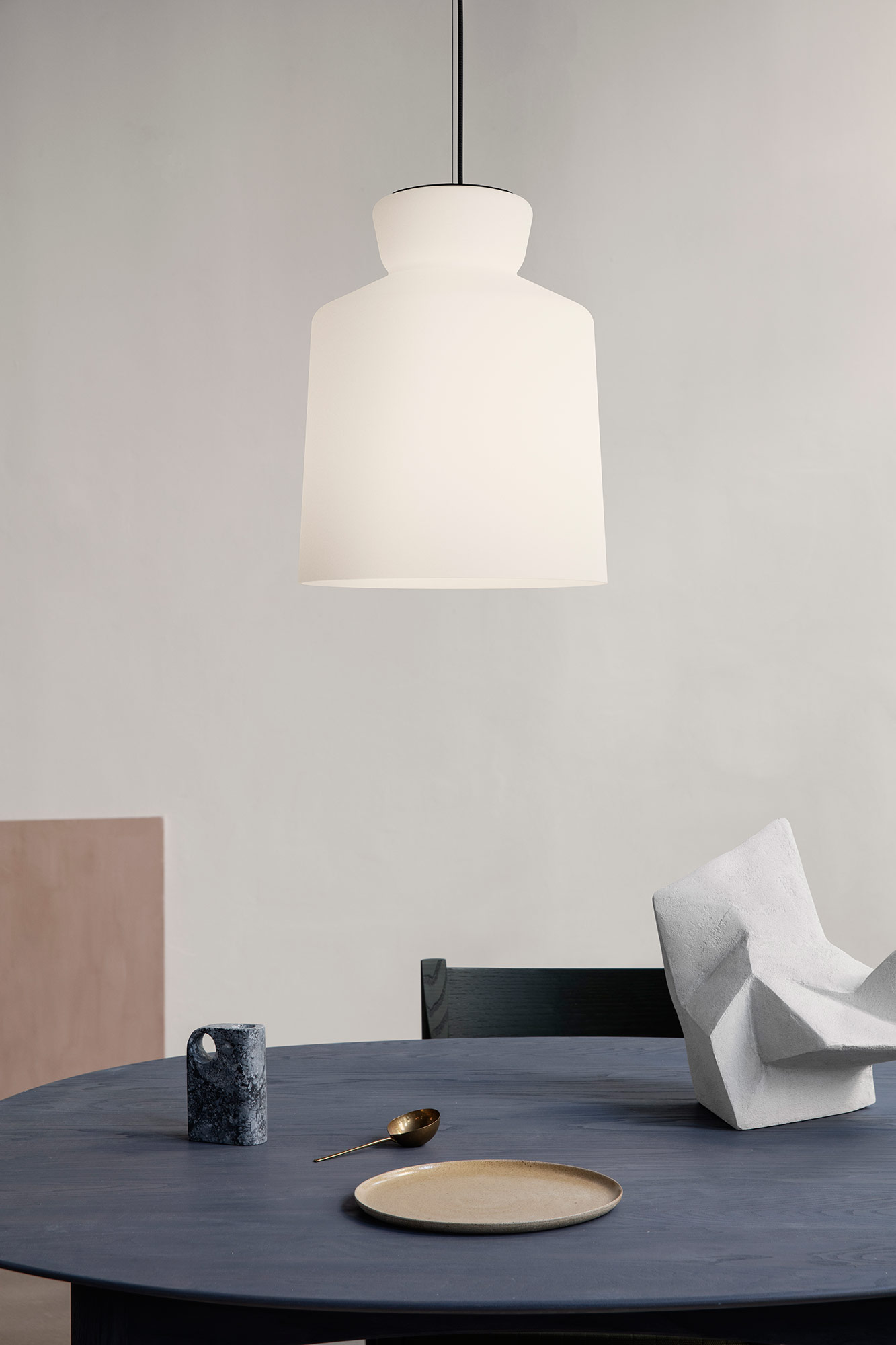Astep reintroduces a remarkable suspension light in handblown opal glass. For more than half a century, the SB Cinquantotto design has held a special place in the Sarfatti family, and now the time has come for the founder of Astep, Alessandro Sarfatti, to share its beauty. A characteristic shape, an original wire mounting and a timeless choice of materials make the SB Cinquantotto pendant from 1958 a true masterpiece for contemporary living.
