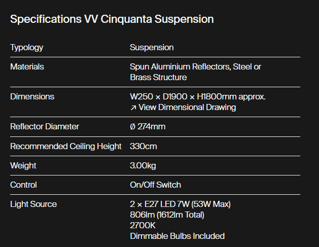 VV Cinquanta is a lighting collection that embodies elegance and versatility.