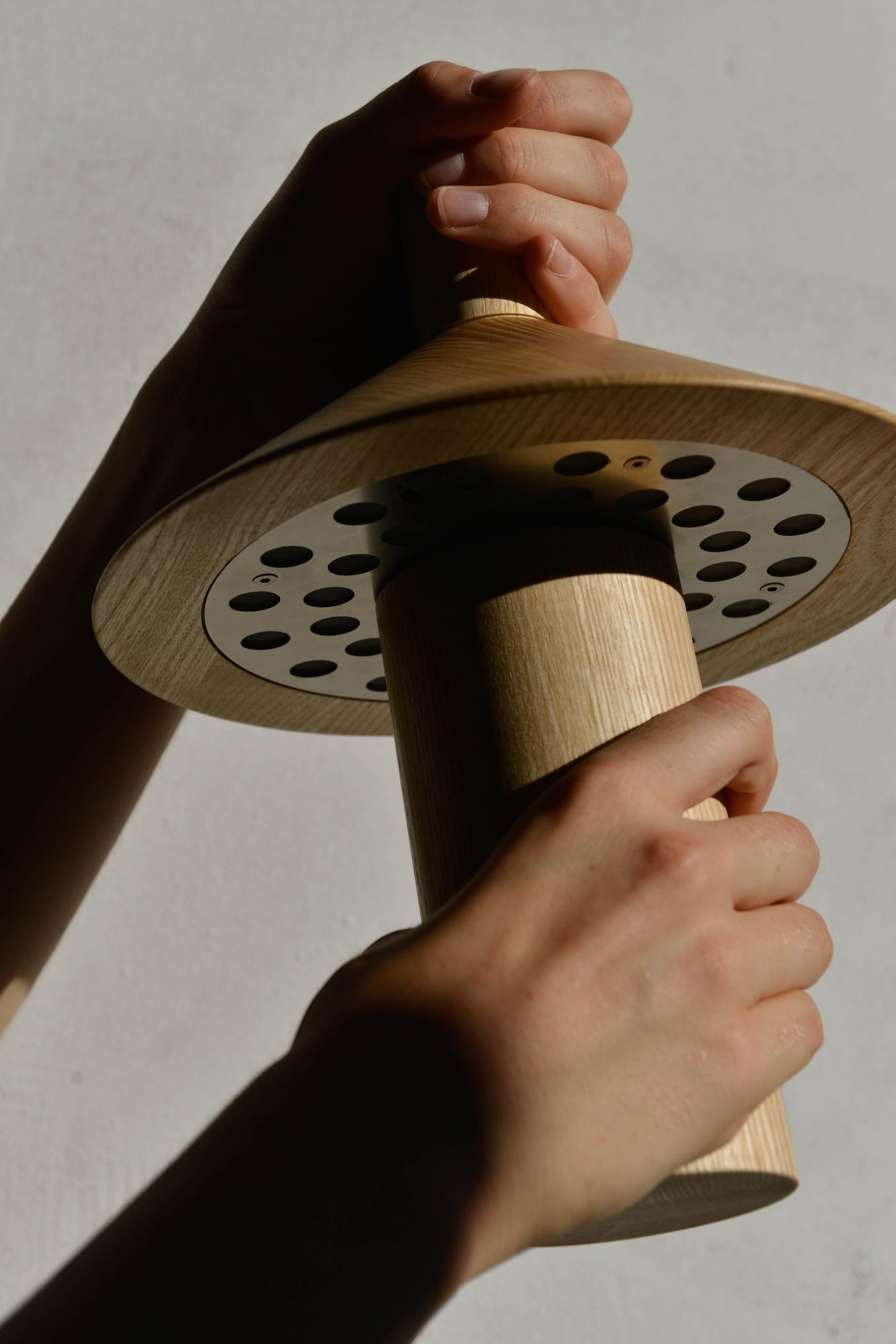 Designed by Francesco Faccin, Pepa is the result of a characteristically holistic approach that combines industrial production with hand-craft. The thoughtful simplicity of construction ensures that Pepa has the longest product life possible, making it a highly sustainable object. By removing just four screws, Pepa is easily maintained and completely repairable. The standard AA NiMH batteries, found in any grocery store, can be easily replaced as they age, and even the circuit board can be simply swapped if need be. At the product’s end-of-life all the parts can be singularly detached and sorted, and the natural wood can return to nature.