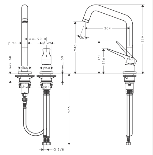 2-hole single lever kitchen mixer 220 with pull-out spray Eco
