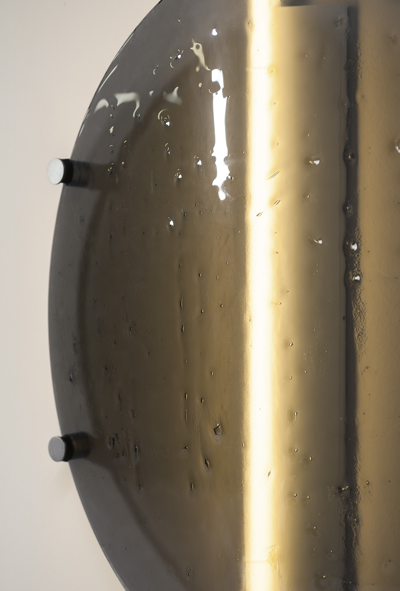 Fused glass lampshade carried out with a particular technique aimed to obtain imperfect surfaces.