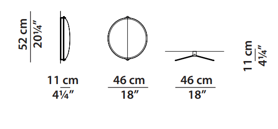 Matte black-varnished metal revolving structure with satin brass details with matte varnish. Rear aluminium metal sheets with leather covering. 12 mm bevelled perimeter mirror.