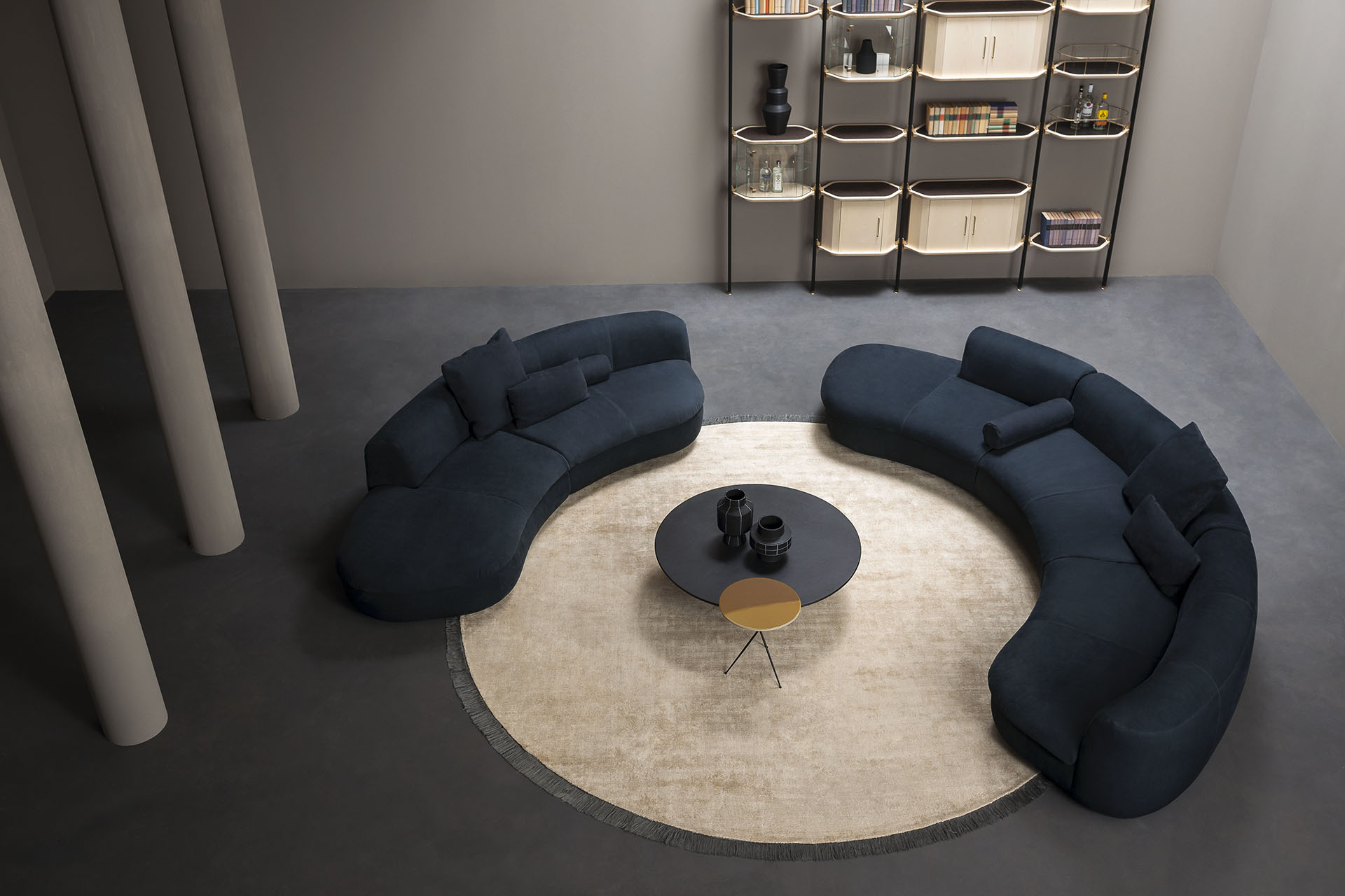 Chilean pine plywood frame. Seat and back cushions in differentiated density polyurethane foam filling with acrylic fibre cover. Springing with woven elastic straps of covered rubber. Base beneath body with leather upholstery.