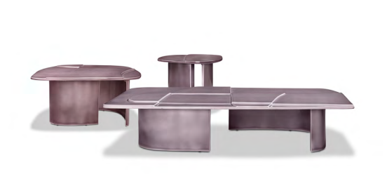 The enamelled finishes, in the Avio, Prune and Sucre shades, blur the gentle reliefs of Keramiké’s profile into light blue mimeses of air and water, brimming with earth and quick off the mark in the greens of the vegetation. Each, in turn, available in three different shades, from the lightest to the most intense, they increase the range of possibilities with which these tables can coexist with their surroundings.