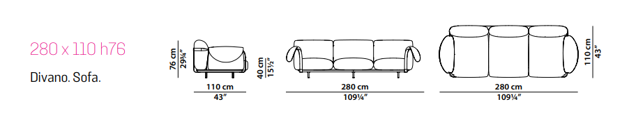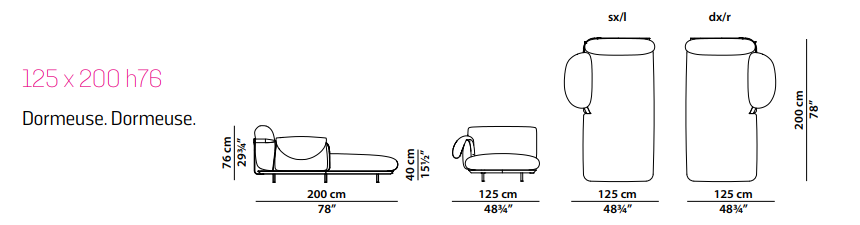 The elements in the Narciso collection give body to these instances. Sofa, dormeuse and armchair: three pieces with an identity defined by sculptural lines. Their respective silhouettes, rendered vaguely irregular by the large, soft cushions that give shape to the backrests and headboard and fall softly over the armrests, are designed as much to stand out on their own as to blend in with each other and with the existing environment.
