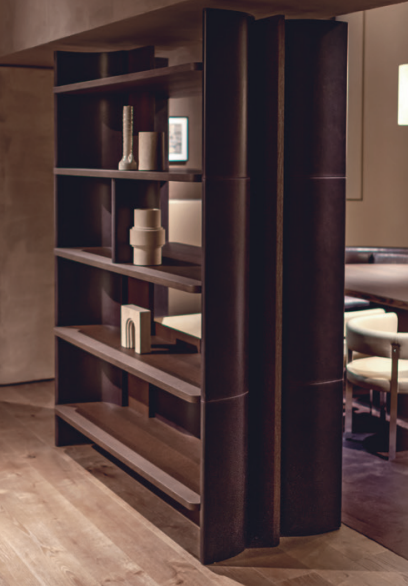 The mix of polished oak and leather reflects the idea of a contemporary classicism that transcends time. And we have the pleasure of choosing the combinations from the many nuances available.
