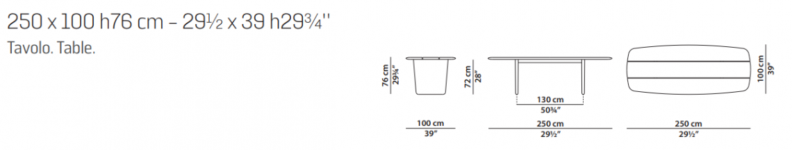 In the low silhouette smoking version and in the taller dining silhouette version, two compact, secure legs supporting a majestic table, we find the sinuosity of an informal character: an invitation not to choose a set side to sit on, the approach to adventure becomes outdoor-friendly.