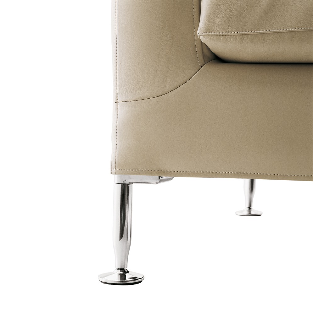 它的主要特點是舒適。它來自傾斜靠背和座椅之間的關系,而其顯著的優點則在于鋁制沙發腳。這個微小的細節為一件相當傳統的產品賦予了真正的現代氣息和輕盈感,這使得它成為一款永恒的沙發。