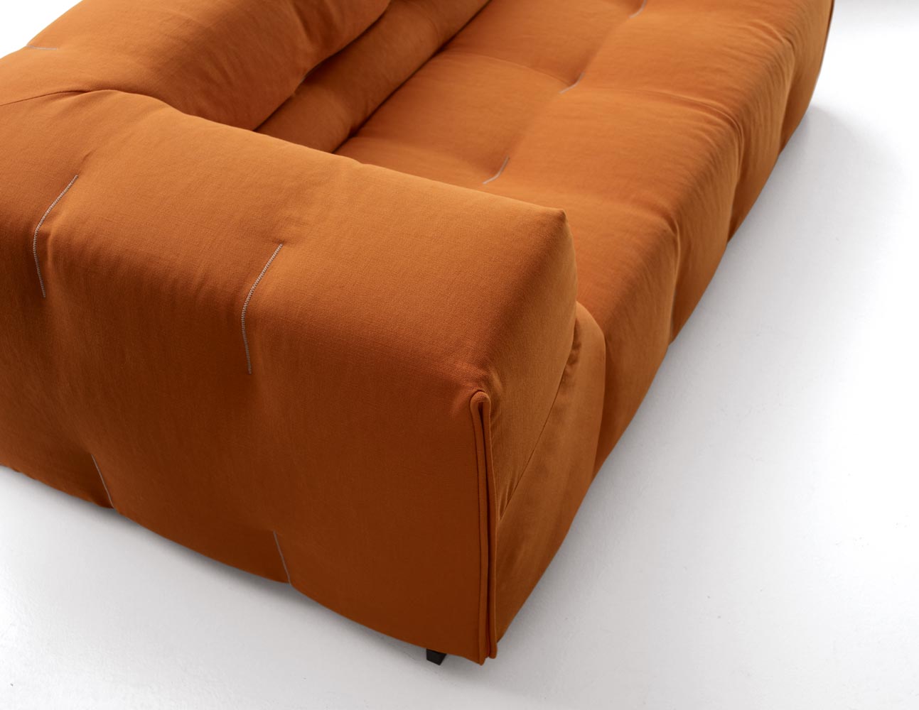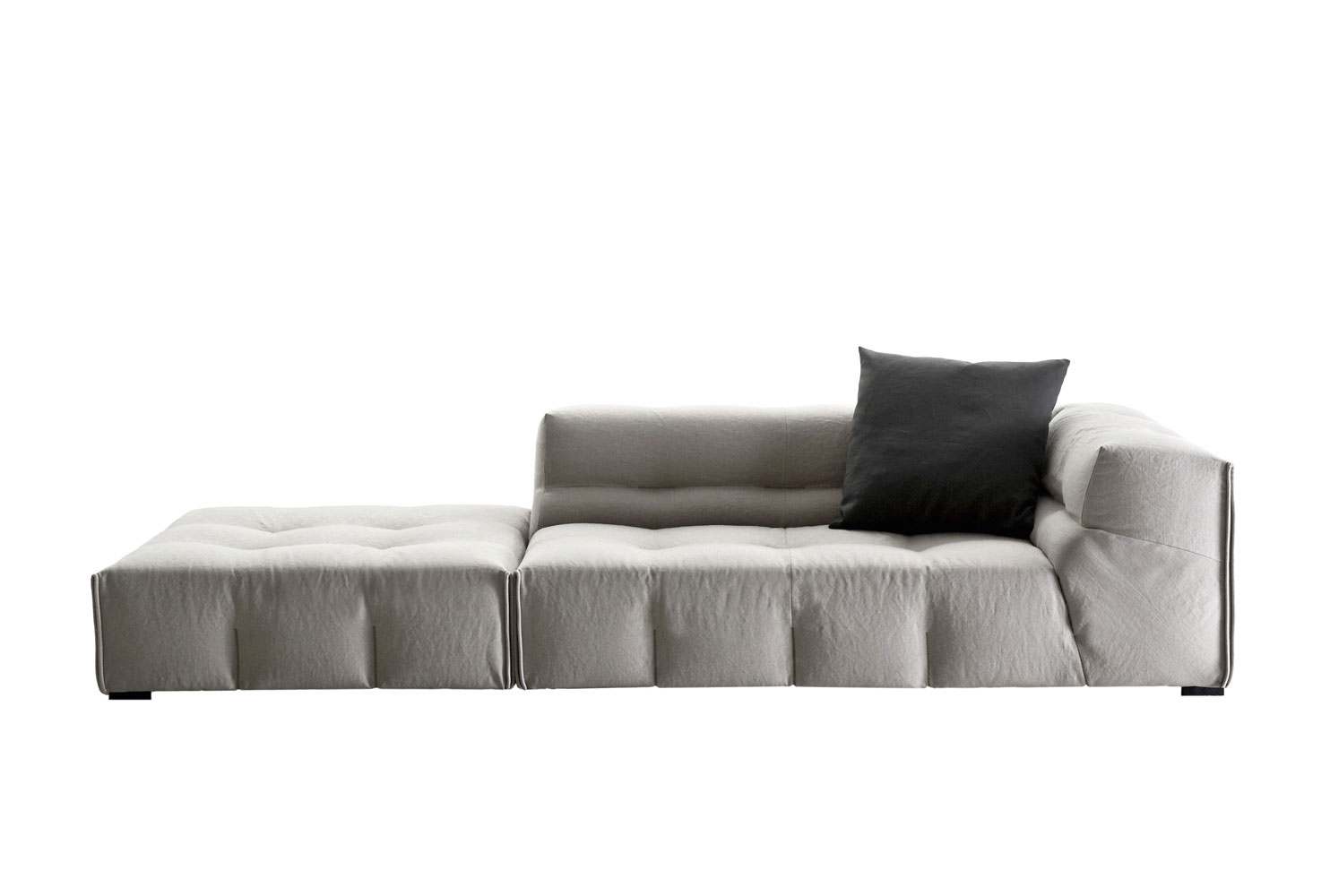 這是Tufty-Time系統(tǒng)的發(fā)展,圖片傳遞出了一種可以想象到的柔軟感受,還有基于定制飾面的裝飾的品質(zhì)。手工皮革釘扣風(fēng)格的引用使得該系列顯得與眾不同。這種風(fēng)格存在于沙發(fā)套相互匹配或呈現(xiàn)出對(duì)比色調(diào)中,這使其成為一個(gè)顯著的特色。它完好地保存了模塊化的特色并采用現(xiàn)代語言,使其對(duì)1960年代的借鑒更加純熟,這更加突出了該系列中的主打產(chǎn)品特點(diǎn)。