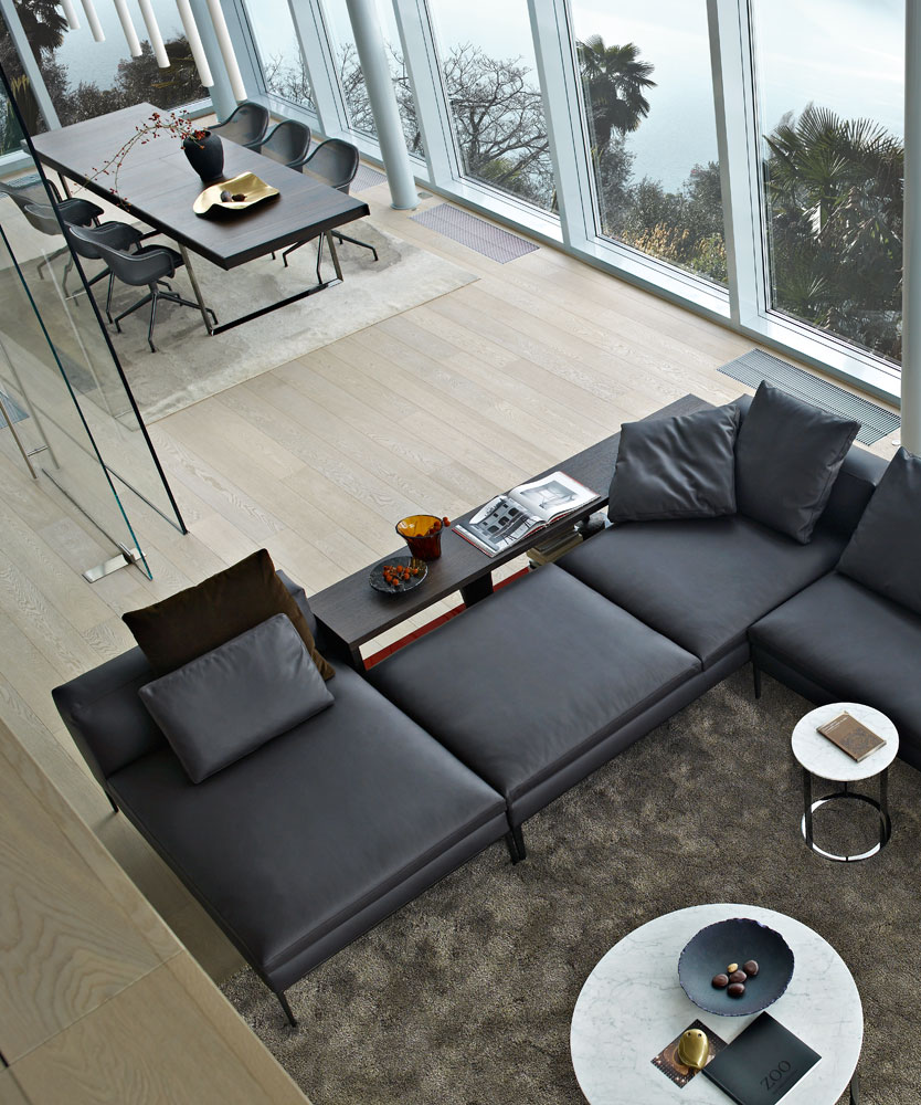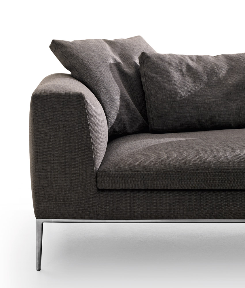Michel 坐具系統包括 34 個直線和模塊化部件,以及 5 款正方形和長方形的擱腳凳。與它的前身 Frank 相反,這個系統的特點是有新的細框架,其材質為青銅鎳色涂漆鋁或黑色鍍鉻鋁,座墊有不同的舒適性。所有直線和模塊化的變化款有兩種不同的深度(89 厘米和 104 厘米)。產品的這種多樣性使得組合能夠有不同類型和方式的用途,適合從正式到休閑風格。Michel 沙發寧靜而又明確地回應了對舒適和幸福的欲求,有聚氨酯泡沫塑料填充的框架、Dacron? 材質填充的靠背和扶手、羽絨和聚氨酯填充的座墊。