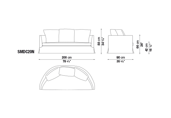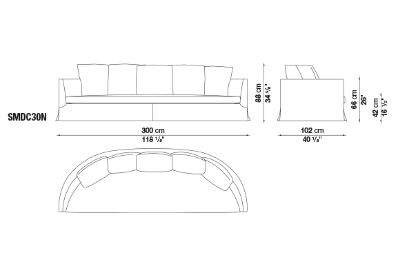 半圓弧形的造型讓這款沙發在三個寬度上(in three widths)別具特色,尤其適合擺放在房間中央。帶有銀灰色涂層鋼制旋轉底座框架的扶手椅也采用了這種弧形,使其可以安置在任何環境中,無論是起居室、書房還是臥室。
