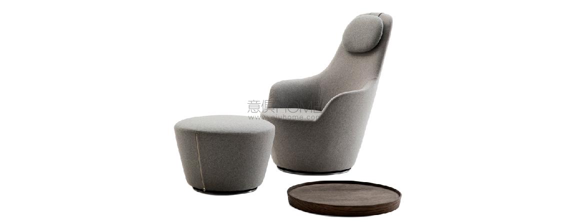 Naoto Fukasawa繼續對倒過來的截頭圓錐體形狀的座椅展開研究,而且這個項目也解決了B&B Italia對探索帶扶手的座椅的需求。利用人體工程學設計、開發了兩種造型以打造一款讓人放松、帶有枕墊的高背扶手椅以及一個低背談話扶手椅。兩款扶手椅都具有轉動底座以及背部可見的金屬鉸鏈,和標志性的Papilio系列一樣,它們都有可拆卸的織物或皮革椅套。在這兩款椅子的基礎上還有加入了第三款產品,一個擱腳凳。在凳子的頂部,有一個可以當成小桌子使用的托盤元素。