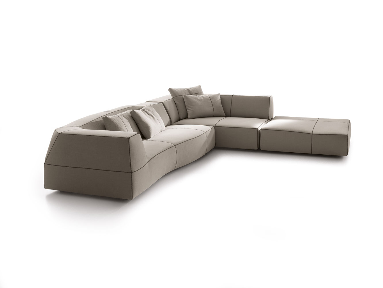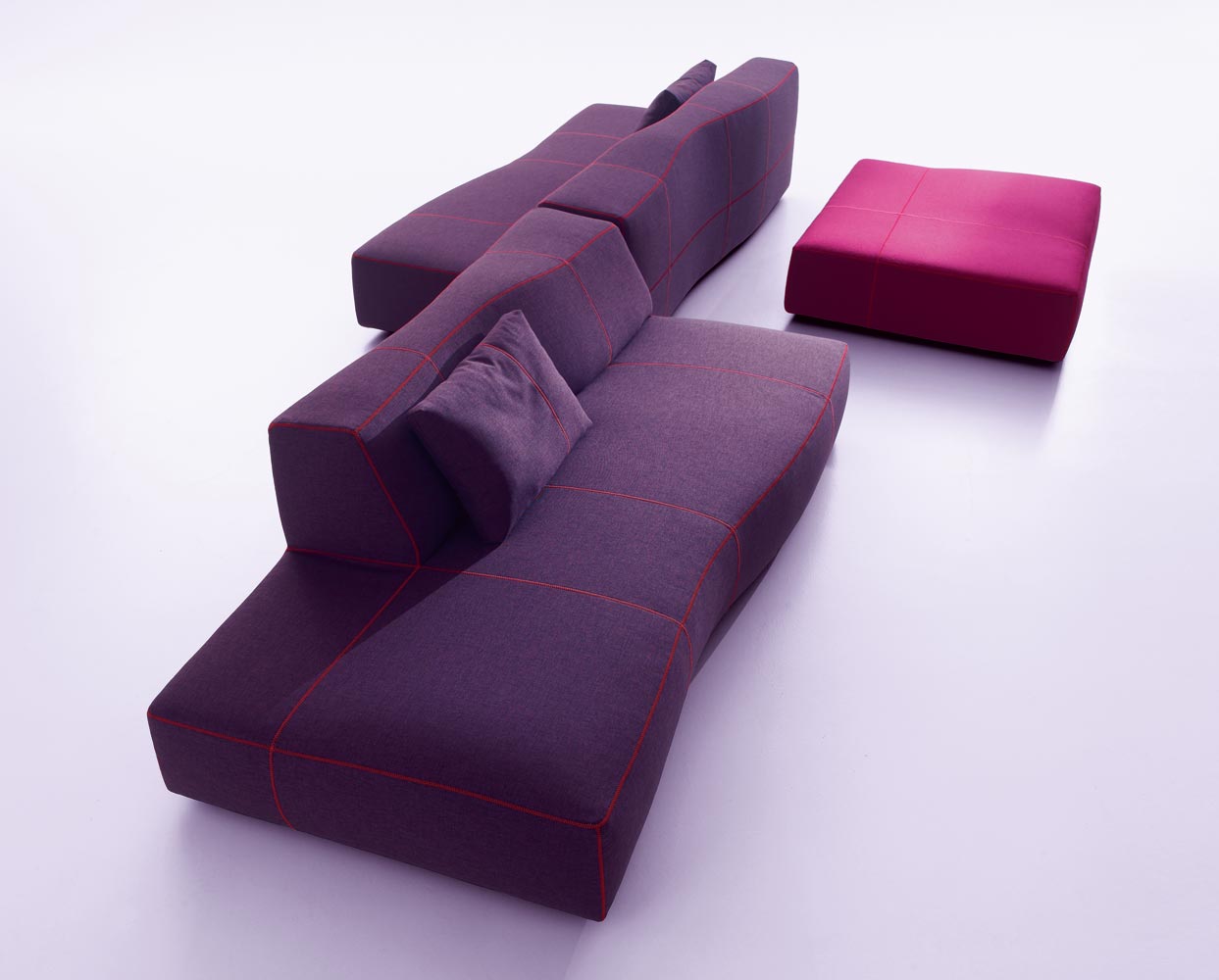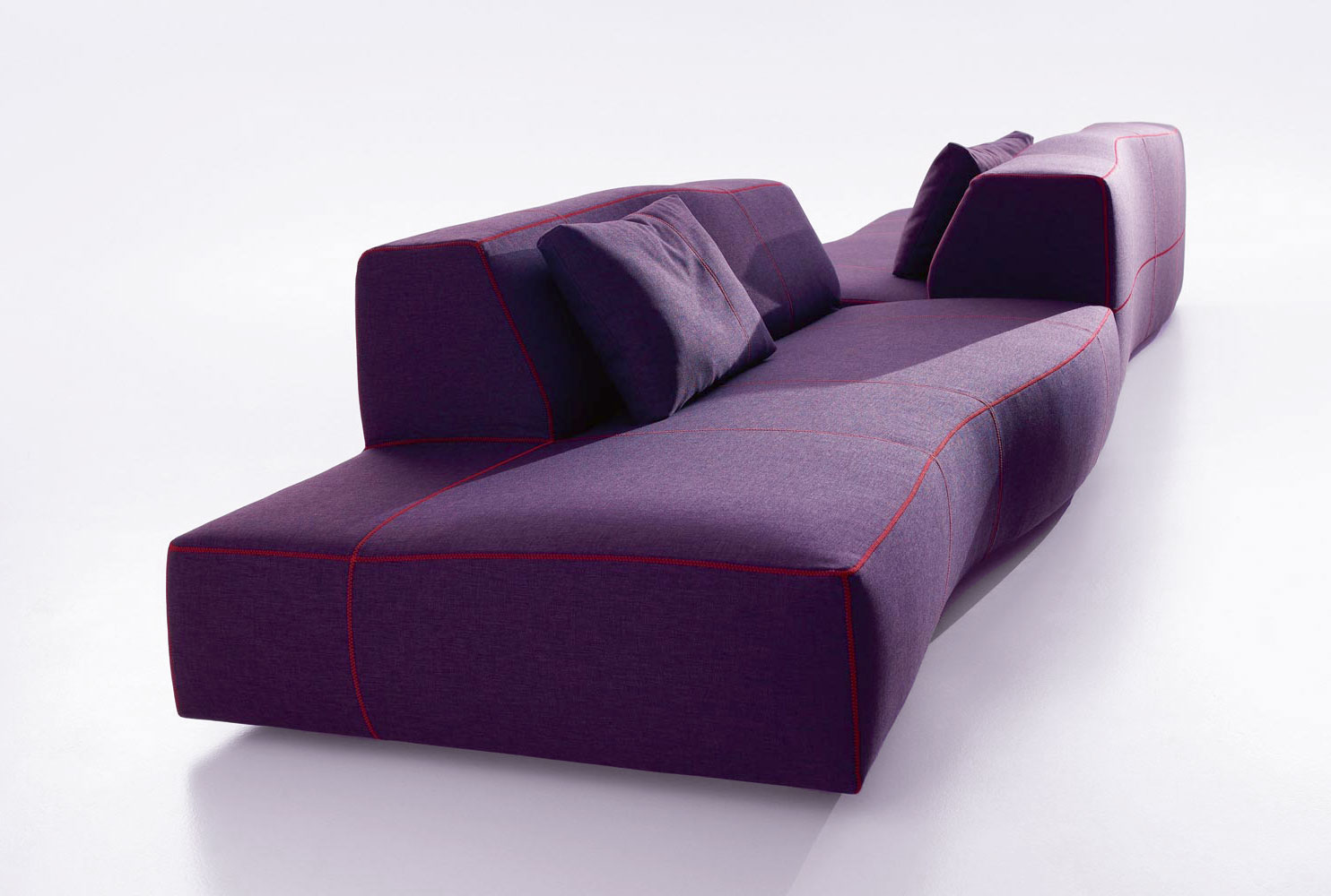 它給人的印象是曾經(jīng)過(guò)某位藝術(shù)家的鑄模處理,但其實(shí)它的這種效果是來(lái)自于3D模型和數(shù)字化研究。它看似一個(gè)經(jīng)過(guò)設(shè)計(jì)師切削、磨圓和鑄模的整體。不規(guī)則的形狀使其更加舒適,對(duì)比色的接合縫勾勒定義了設(shè)計(jì)和動(dòng)作。Bend Sofa結(jié)合了手工技巧和技術(shù),硬度和力量,同時(shí)豐富的型號(hào)使其在使用方面也相當(dāng)靈活。它的原創(chuàng)性與非常詳盡的組合研究密不可分。其波紋狀的模塊的組裝可以從座椅、擱腳凳和轉(zhuǎn)角元素開始,它們可以實(shí)現(xiàn)各種可能的解決方案——從用于有限空間中緊湊的線性版本到復(fù)雜、范圍寬廣的布局。