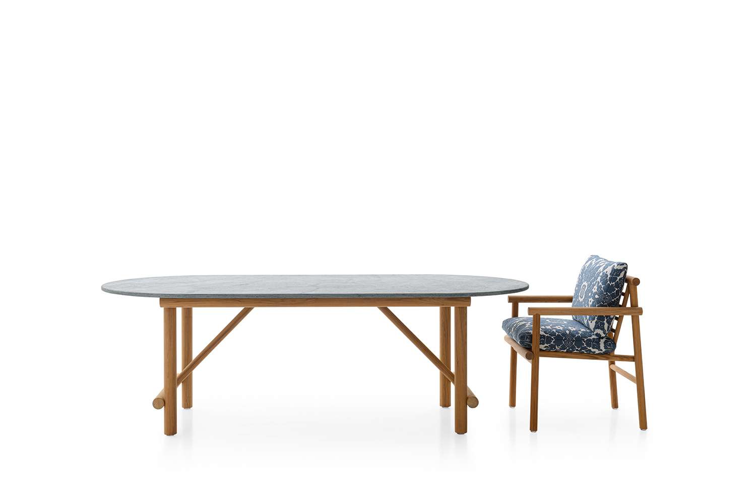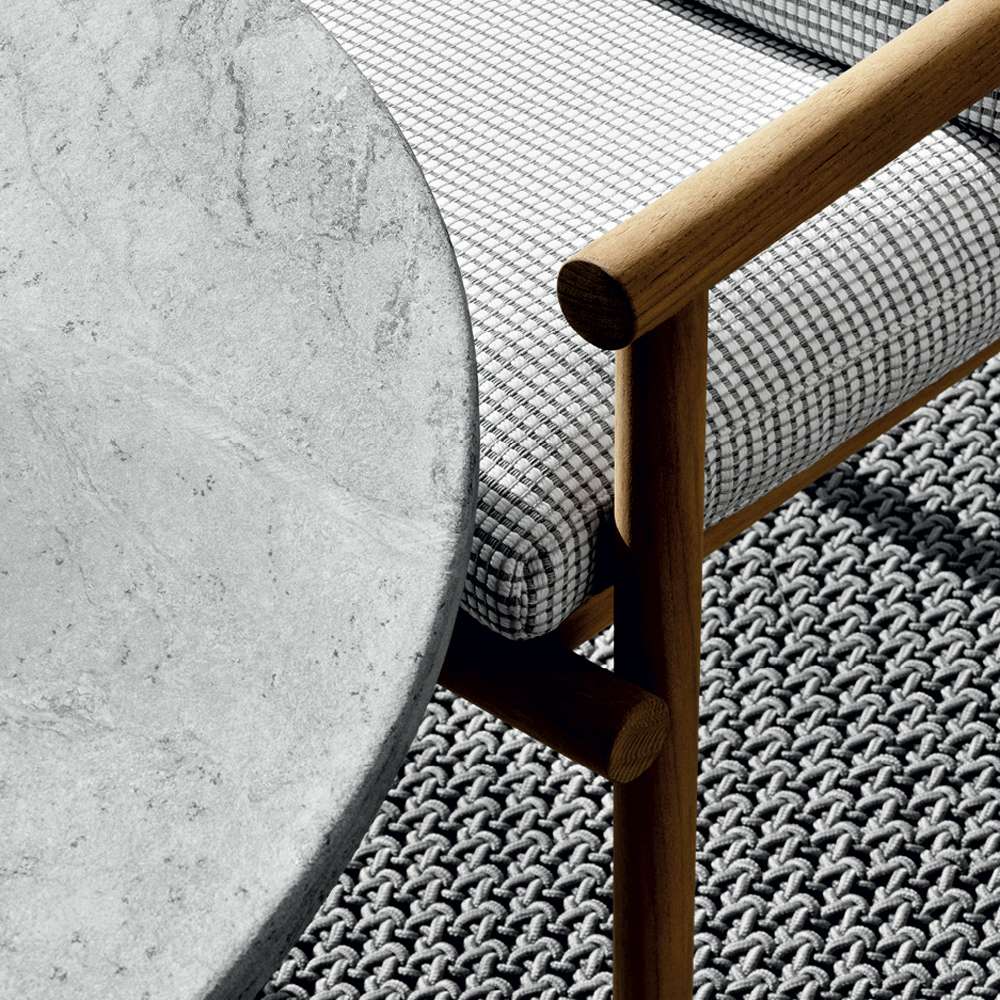 Minimalist and innovative, the Ayana collection becomes a new chapter in the story that connects B&B Italia to Naoto Fukasawa. It sees wood as the protagonist, interpreted in an unusual way, witha pleasant oriental touch. If the depths and heights are a clear reference to the south-east Asian tradition, the backrest recalls a Swedish wall bar, an exercise equipment turned into a load-bearing element. Thanks to this solution, the elements of the Ayana collection can be enjoyed and appreciated at 360 degrees, discovering on each side a new elegant interplay of intersections and proportions. Two and three seat sofas and the armchair have armrests at different heights. The armchair armrest is higher to guarantee a more ergonomic seat. The sofa armrest, which is lower, can be combined with a cushion that is easy to be fastened and removed, and helps to lie down more comfortably if necessary. The upholstery of this collection stands out for the individual cushions, all covered with waterproof fabrics.