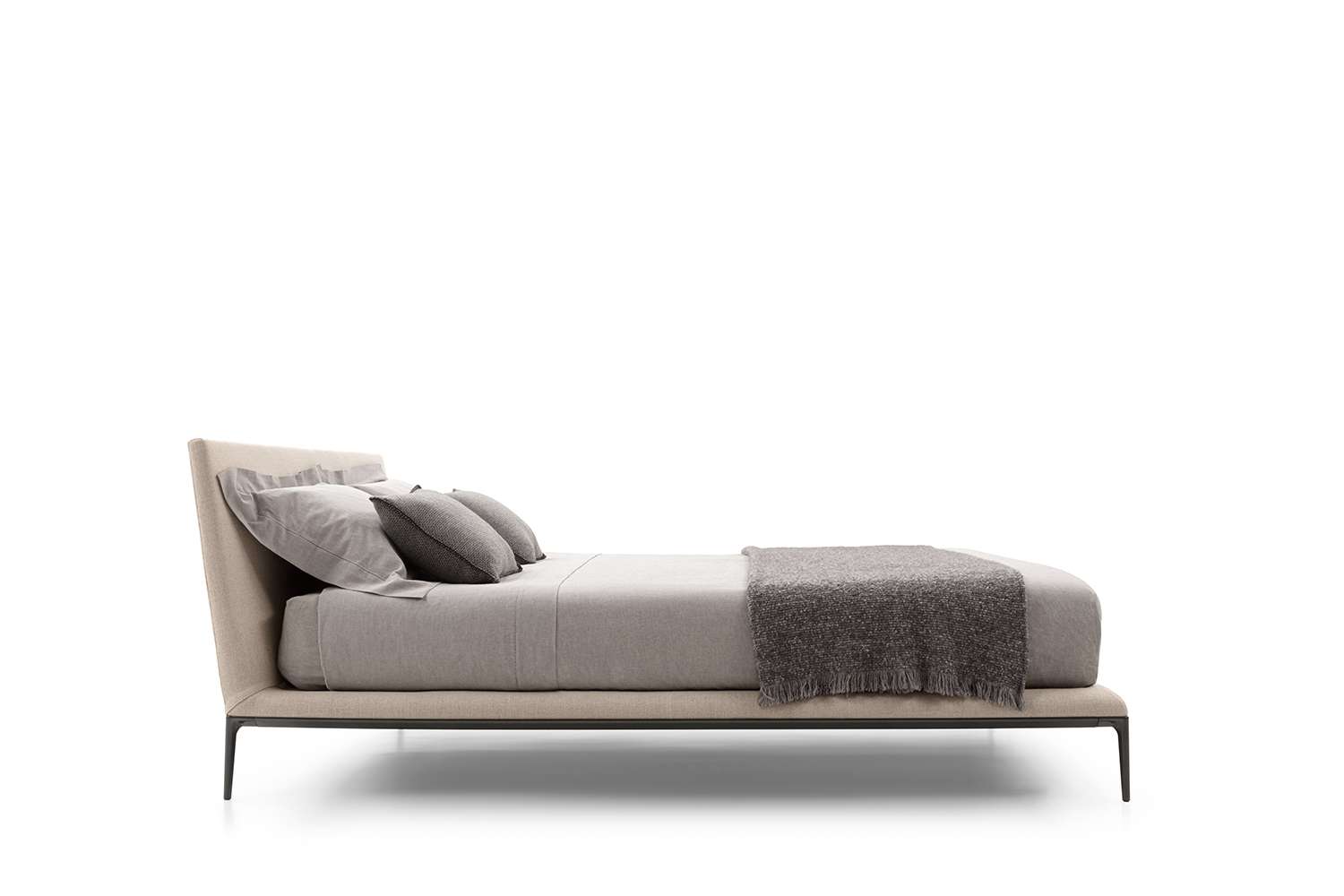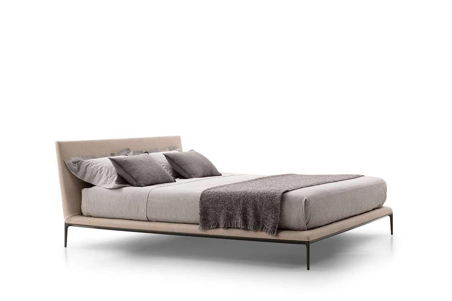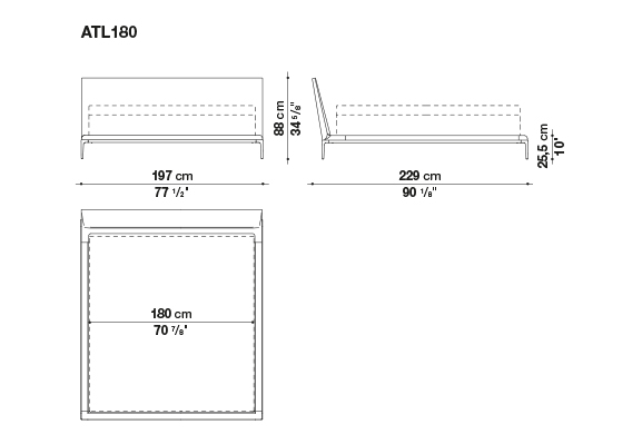 The B&B Atoll collection is continuously being expanded and updated, and has now been extended with the addition of a new bed. This latest piece of furniture reflects the stylistic elements of the B&B Atoll sofas, united as they are by the same exceptional elegance, clean, understated lines, and rigorous proportions, as well as by the die-cast aluminium legs set at each corner, now a staple of contemporary furniture. As with the entire B&B Atoll range, the bed can be covered in leather or fabric.