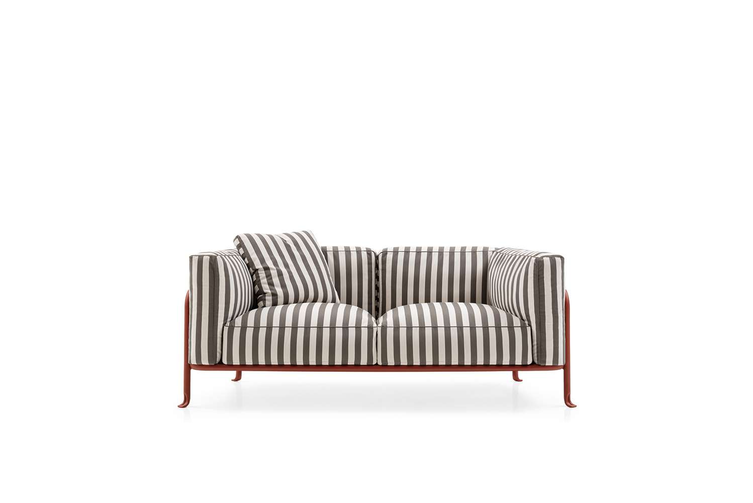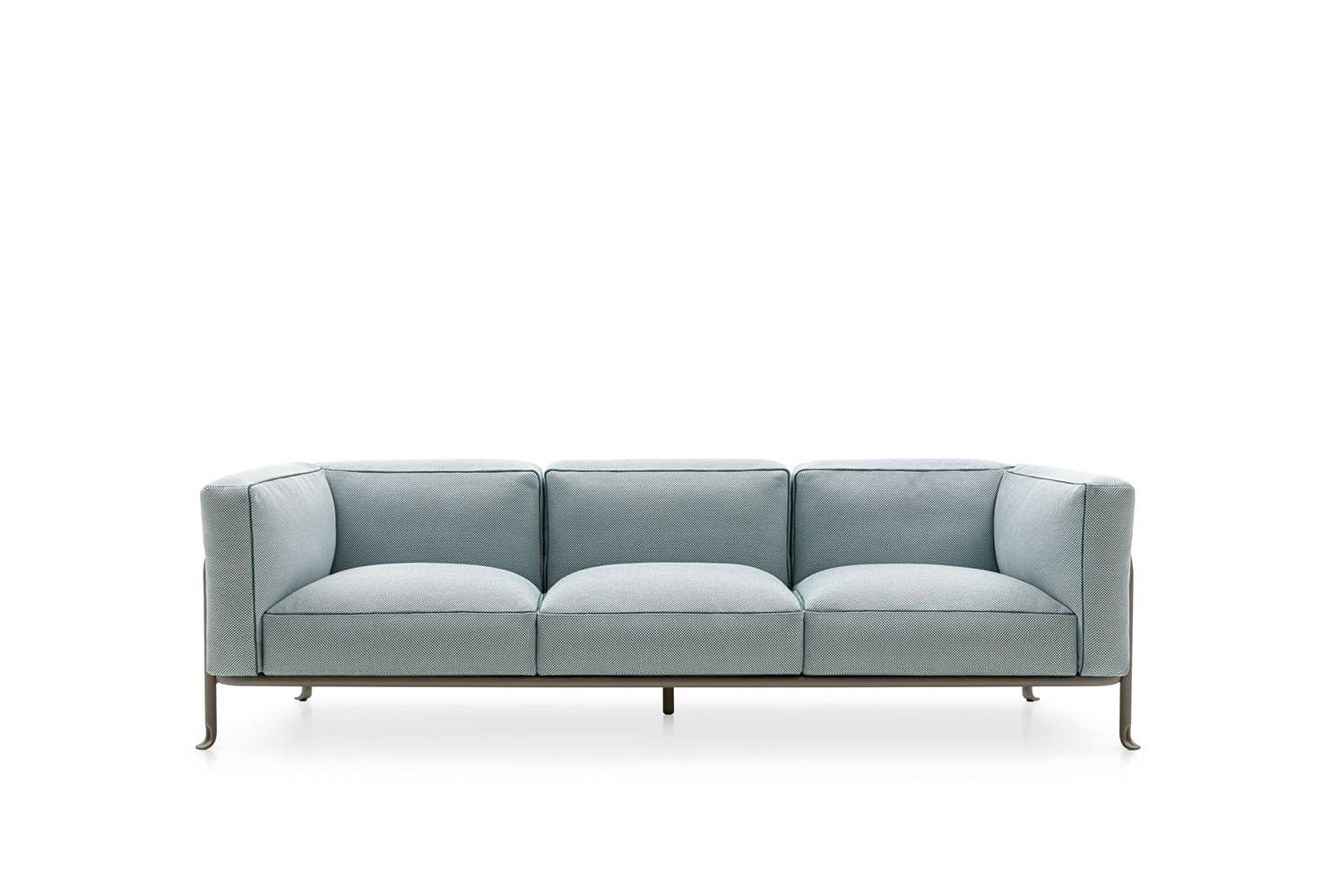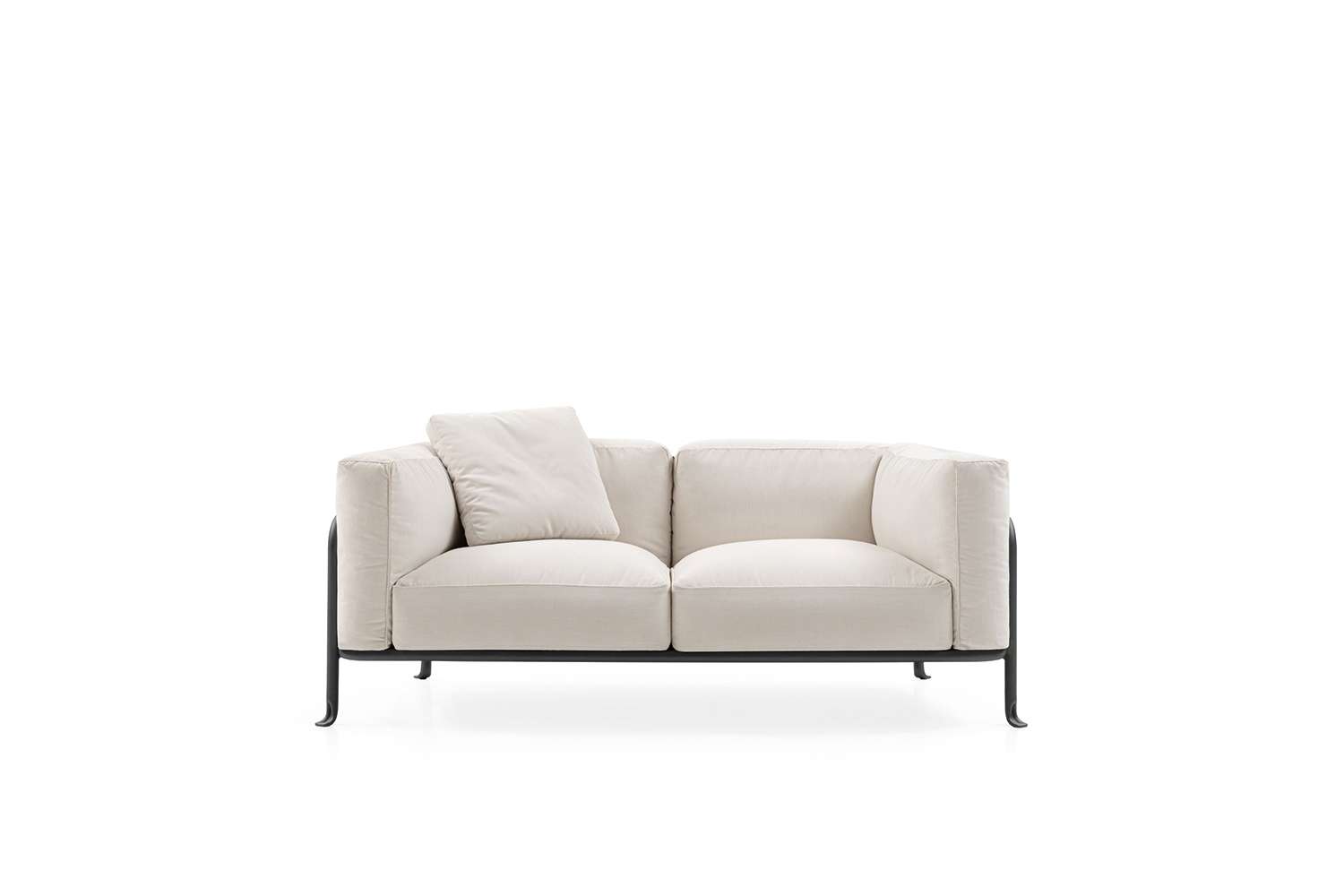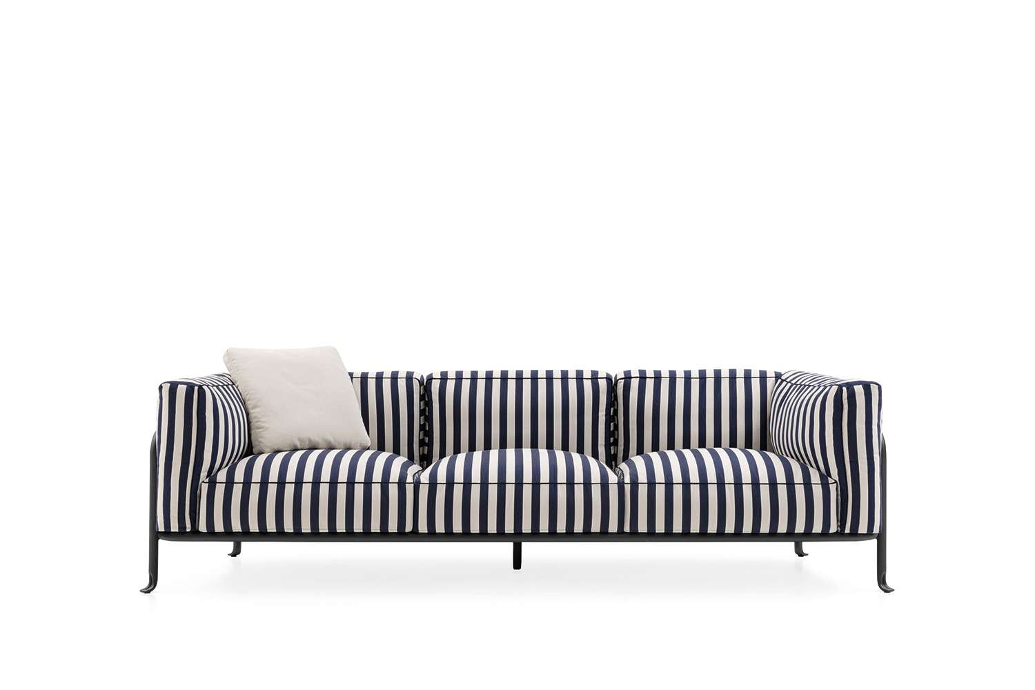 Borea is a complete and eclectic collection of outdoor seats and tables designed by Piero Lissoni. The numerous pieces in the collection have in common tubular metal structures with a fluid and seamless design, without joints and interruptions, captivating and even emerging in the detail that extends to the base. The metal bending processes take advantage of techniques typically used in the aeronautical sector and transport them into the world of outdoor furniture bringing life to a collection with an unmistakable style. The collection includes two- and three-seater sofas, an oversized armchair, a low small armchair and a dining chair, all with stackable aluminum structures painted. Comfort is ensured by generous cushions, which are not only soft and relaxing but were also developed to be sustainable. Paddings are in fact made with polyester fiber filling coming from recycled PET plastic bottles enveloping a different densities polyurethane core. 510 1500 ml bottles are needed to create the padding for a Borea three-seater sofa, 390 bottles for the twoseater sofa, 280 for the armchair.