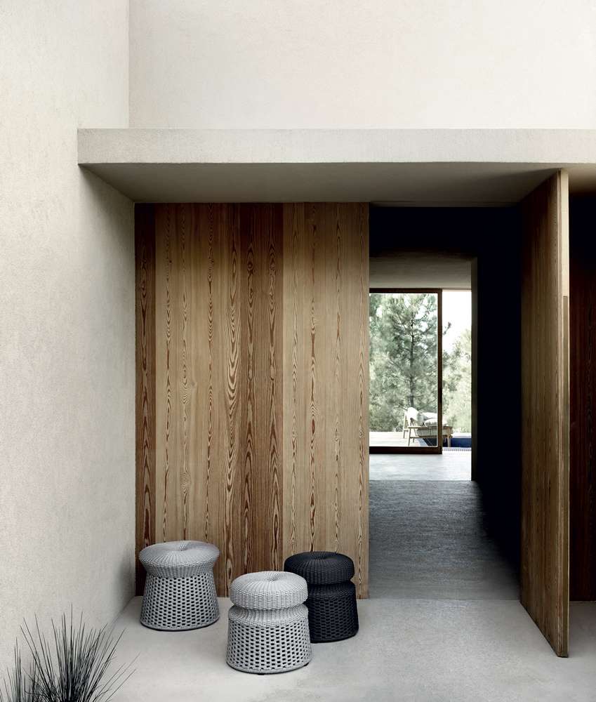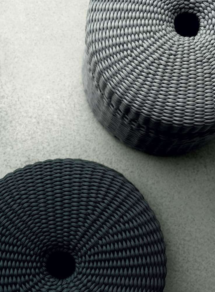 The B&B Italia’s Research & Development Centre has developed Hospes, an extremely versatile ottoman that is at its best in any room. A dynamic complement that can be used in different ways and fits perfectly with different product families. Made in two sizes and three colors - overseas blue, stone, anthracite - it is based on a robust aluminum frame covered with an interlacing of waterproof ropes. On top, the interlacing is held up by webbing that provides support and comfort.